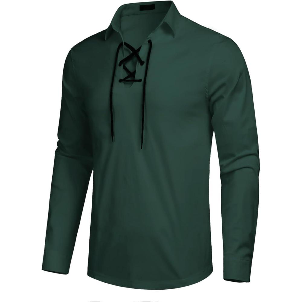 COOFANDY Mens Scottish Jacobite Ghillie Kilt Shirts Medieval Renaissance Pirate Costume Long Sleeve Lace Up Henley Shirt(Deep Green)
