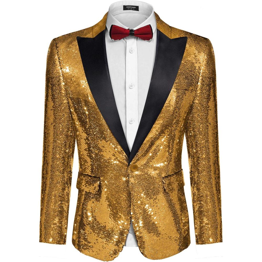 COOFANDY Mens Sequin Blazer Tuxedo Party Prom Wedding Tuxedo One Button Jacket(Golden Yellow)