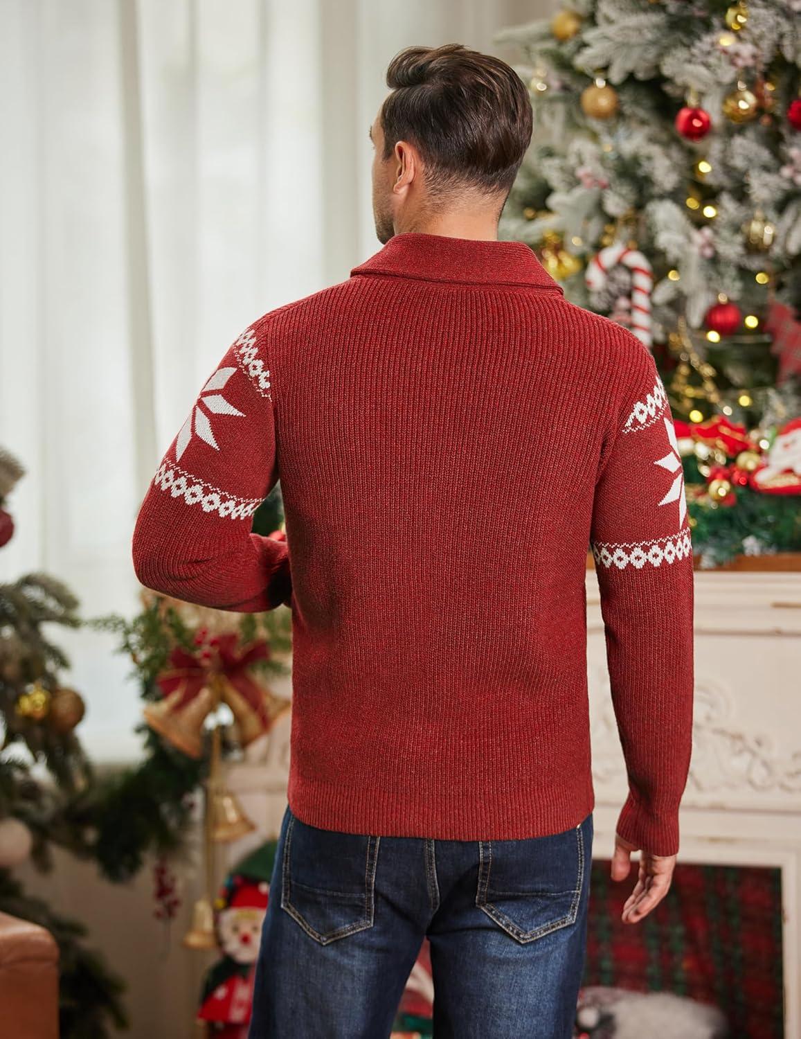 COOFANDY Men’s Shawl Collar Cardigan Sweater Slim Fit Cable Knit Button up Sweater with Pockets(Christmas Red/White)