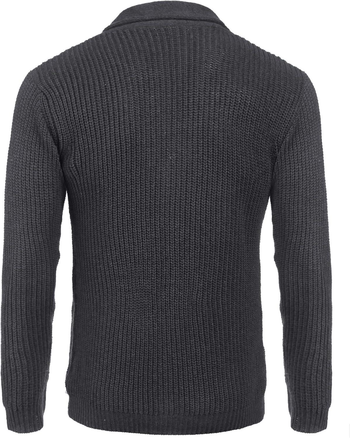 COOFANDY Men’s Shawl Collar Cardigan Sweater Slim Fit Cable Knit Button up Sweater with Pockets(Dark Grey)