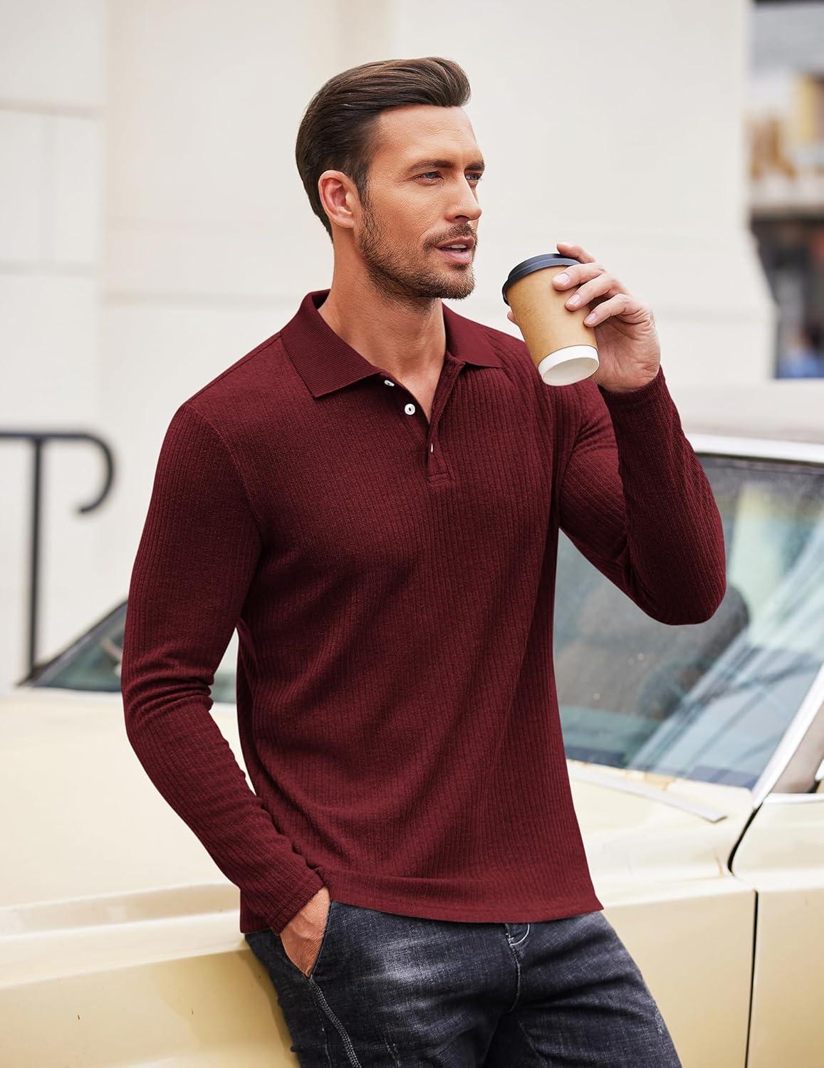 COOFANDY Men's Shawl Collar Pullover Sweater Casual Slim Fit Button Textured Knit Sweaters: Basic pullover sweater featuring shawl collar, solid colors, basket knit patterned, two round buttons, and ribbed at cuffs and hem