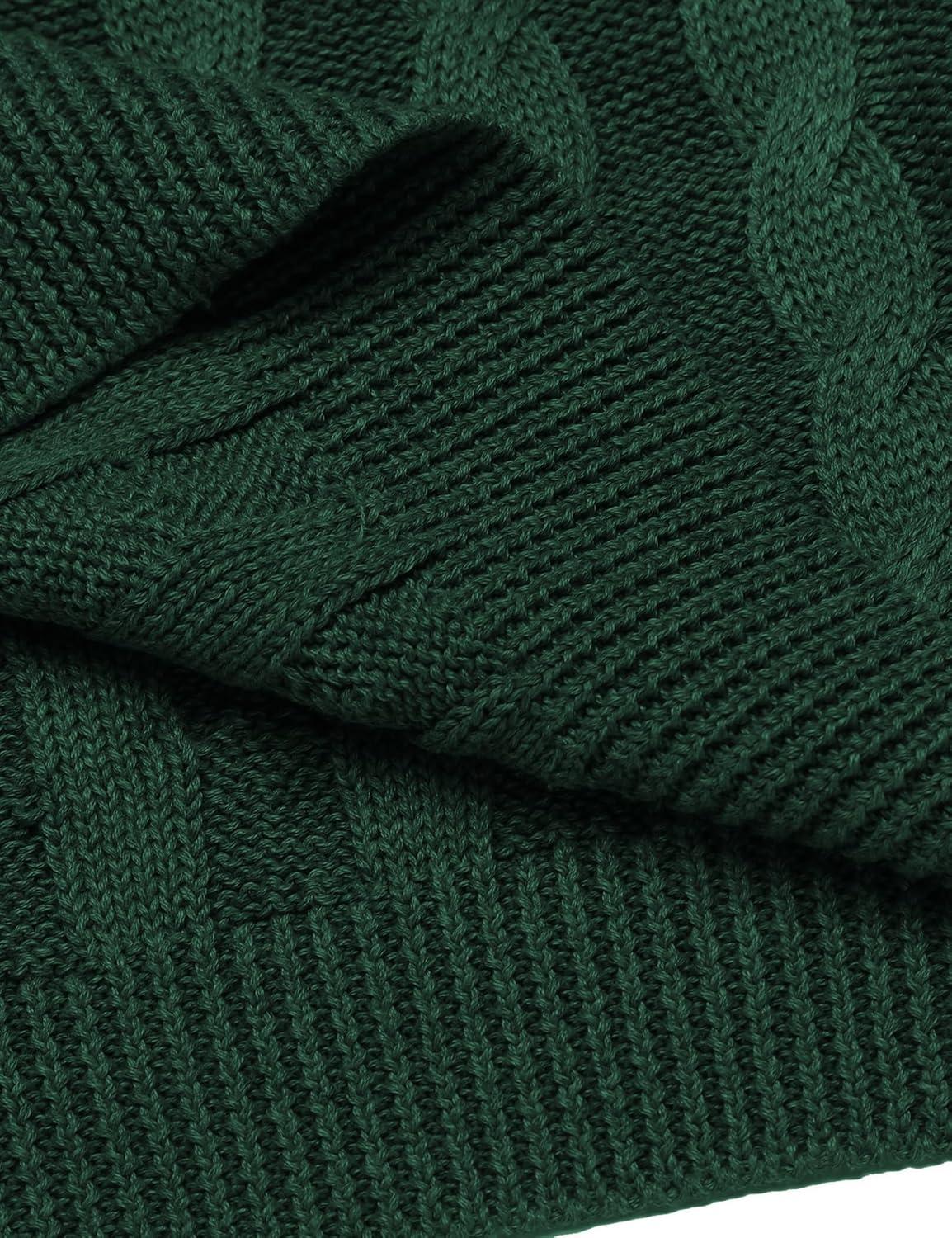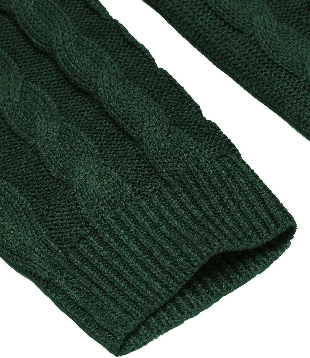 COOFANDY Men’s Shawl Collar Pullover Sweater Slim Fit Casual Button Cable Knit Sweaters(Green)