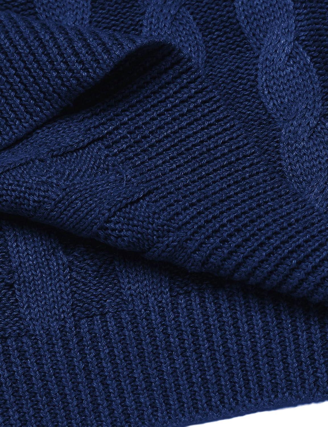 COOFANDY Men’s Shawl Collar Pullover Sweater Slim Fit Casual Button Cable Knit Sweaters(Royal Blue)