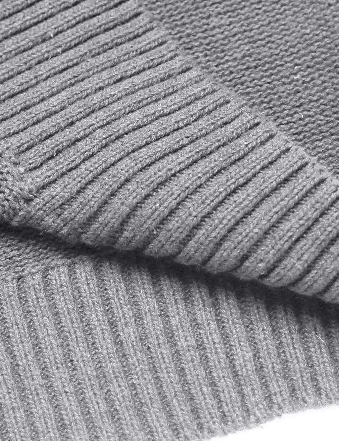 COOFANDY Men’s Shawl Collar Sweaters V-Neck Relaxed Fit Cable Pullovers(Light Grey)