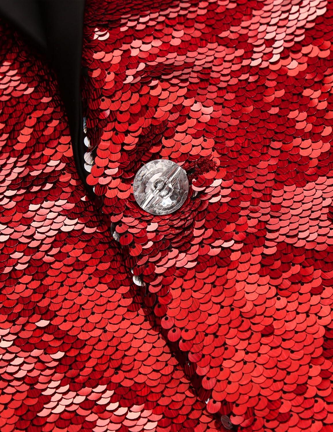COOFANDY Mens Shiny Sequin Blazer Tuxedo Party Dinner Prom One Button Suit Jacket(Red-2)