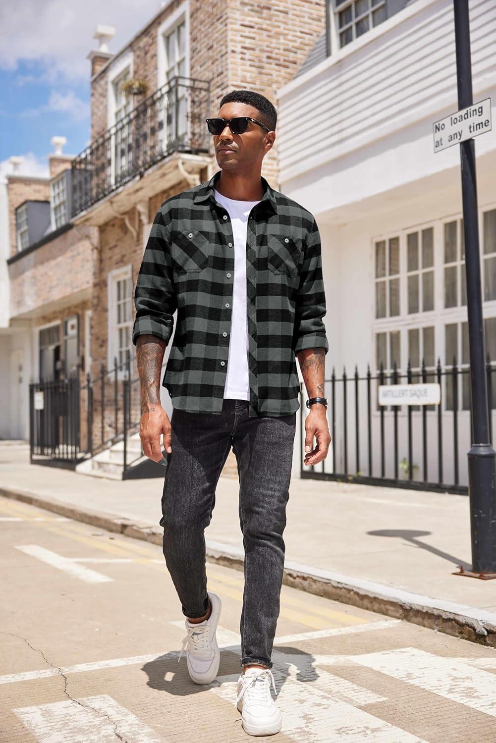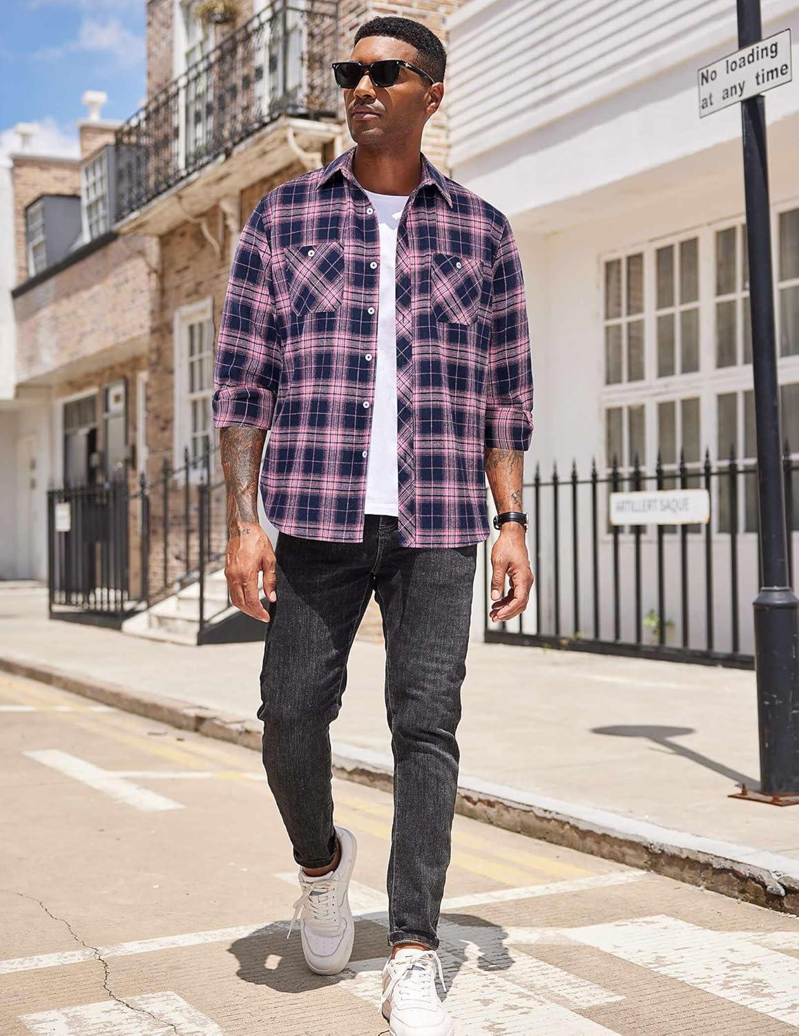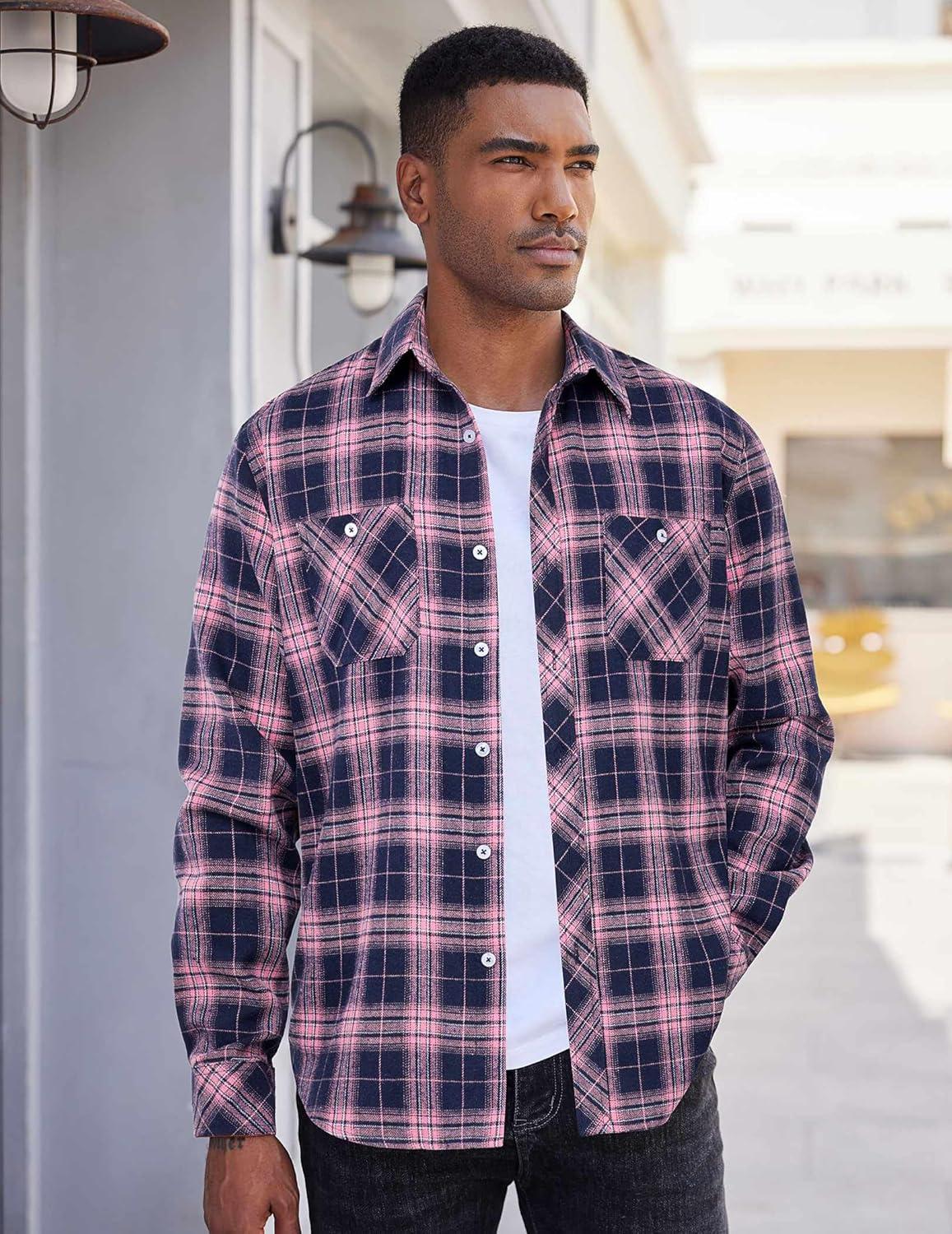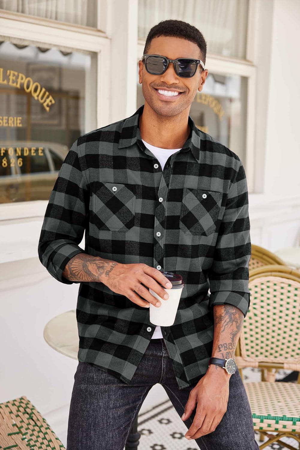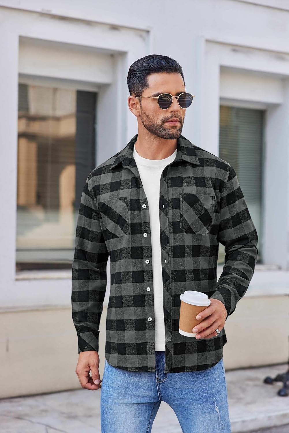 COOFANDY Mens Shirt Jacket Casual Button Up Shirts Long Sleeve Lightweight Shacket with Flap Pockets(Brown)