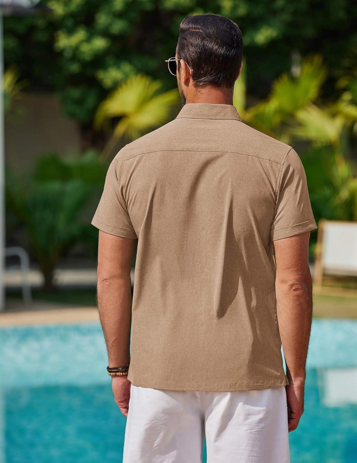 COOFANDY Men’s Short Sleeve Button Down Shirt Casual Summer Beach Untucked Vacation Textured Shirts with Pocket(Khaki)