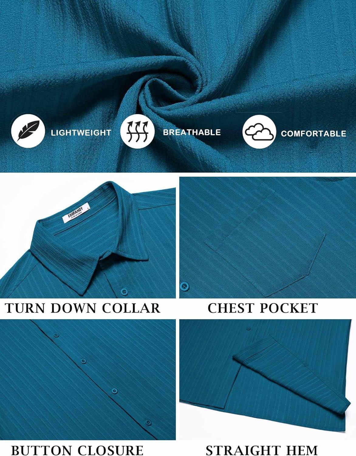 COOFANDY Men’s Short Sleeve Button Down Shirt Casual Summer Beach Untucked Vacation Textured Shirts with Pocket(Lake Blue)