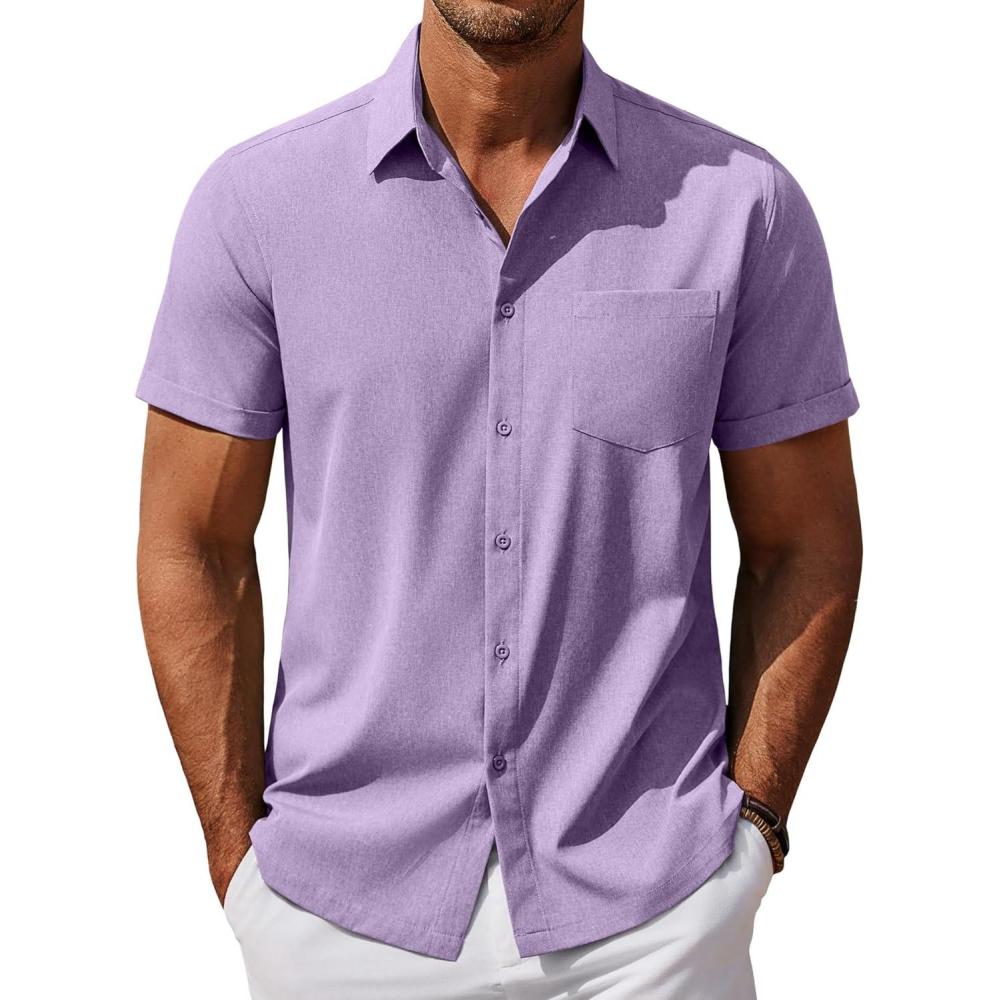 COOFANDY Men’s Short Sleeve Button Down Shirt Casual Summer Beach Untucked Vacation Textured Shirts with Pocket(Purple)