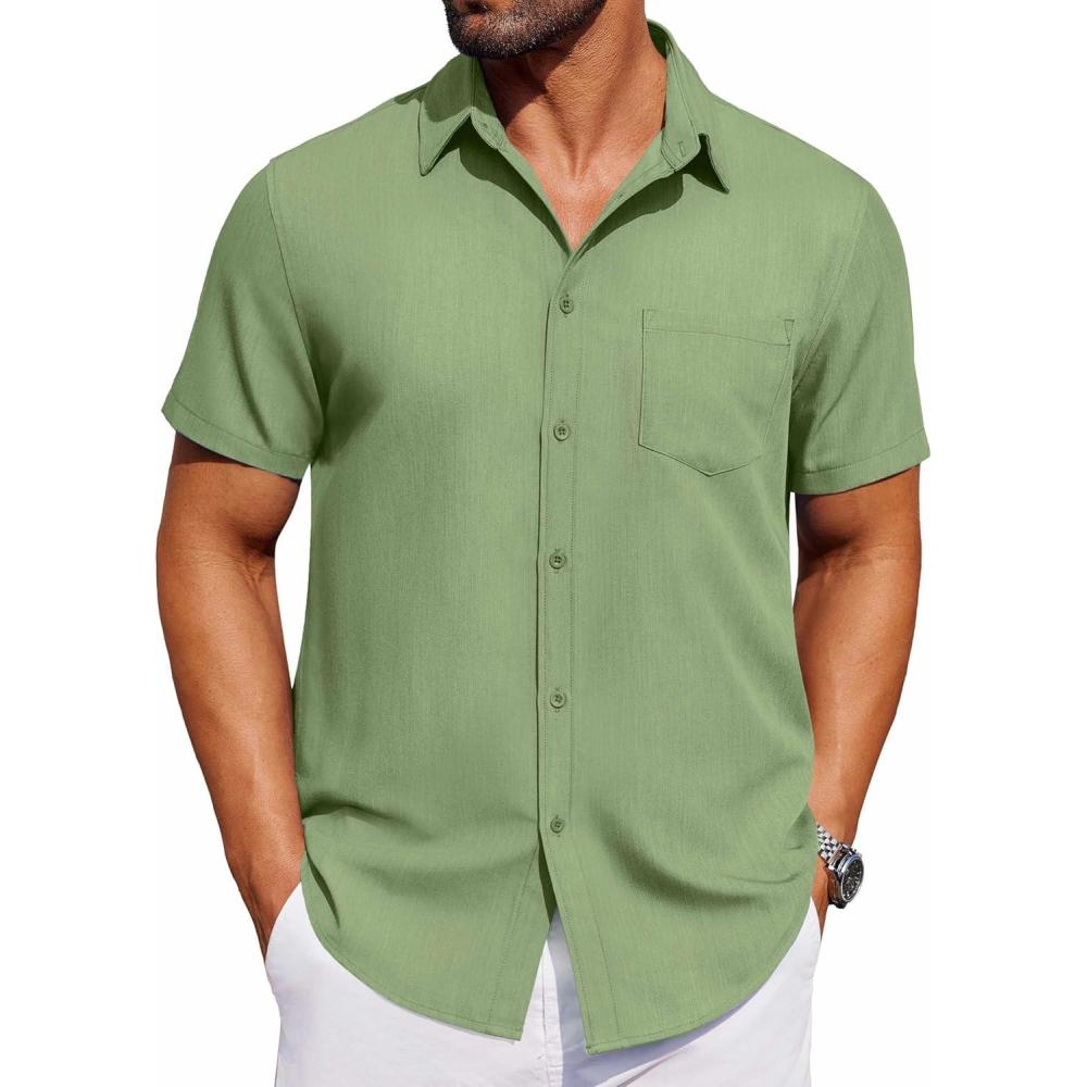 COOFANDY Men’s Short Sleeve Button Down Shirt Casual Untucked Dress Shirt Stretch Denim Shirt(Light Green)