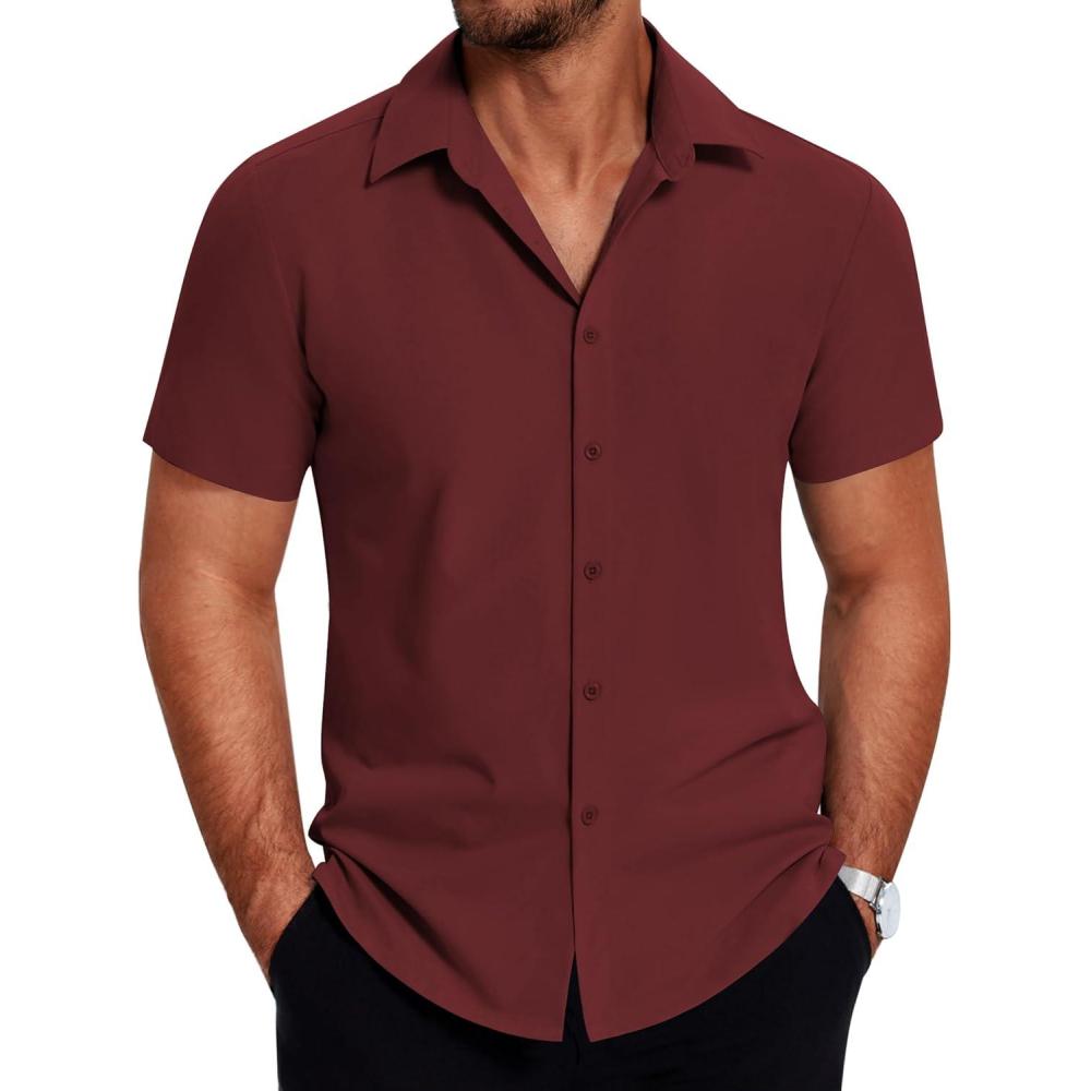 COOFANDY Mens Short Sleeve Button Down Shirt Lightweight Wrinkle Free Untucked Dress Shirts(Dark Red)