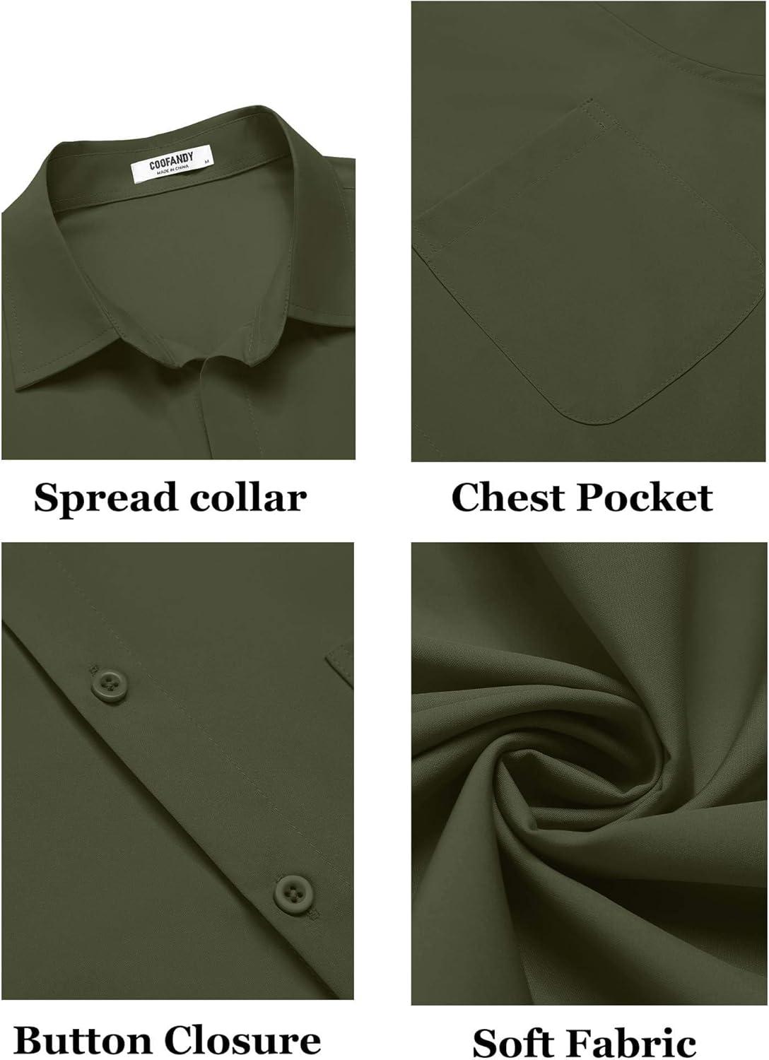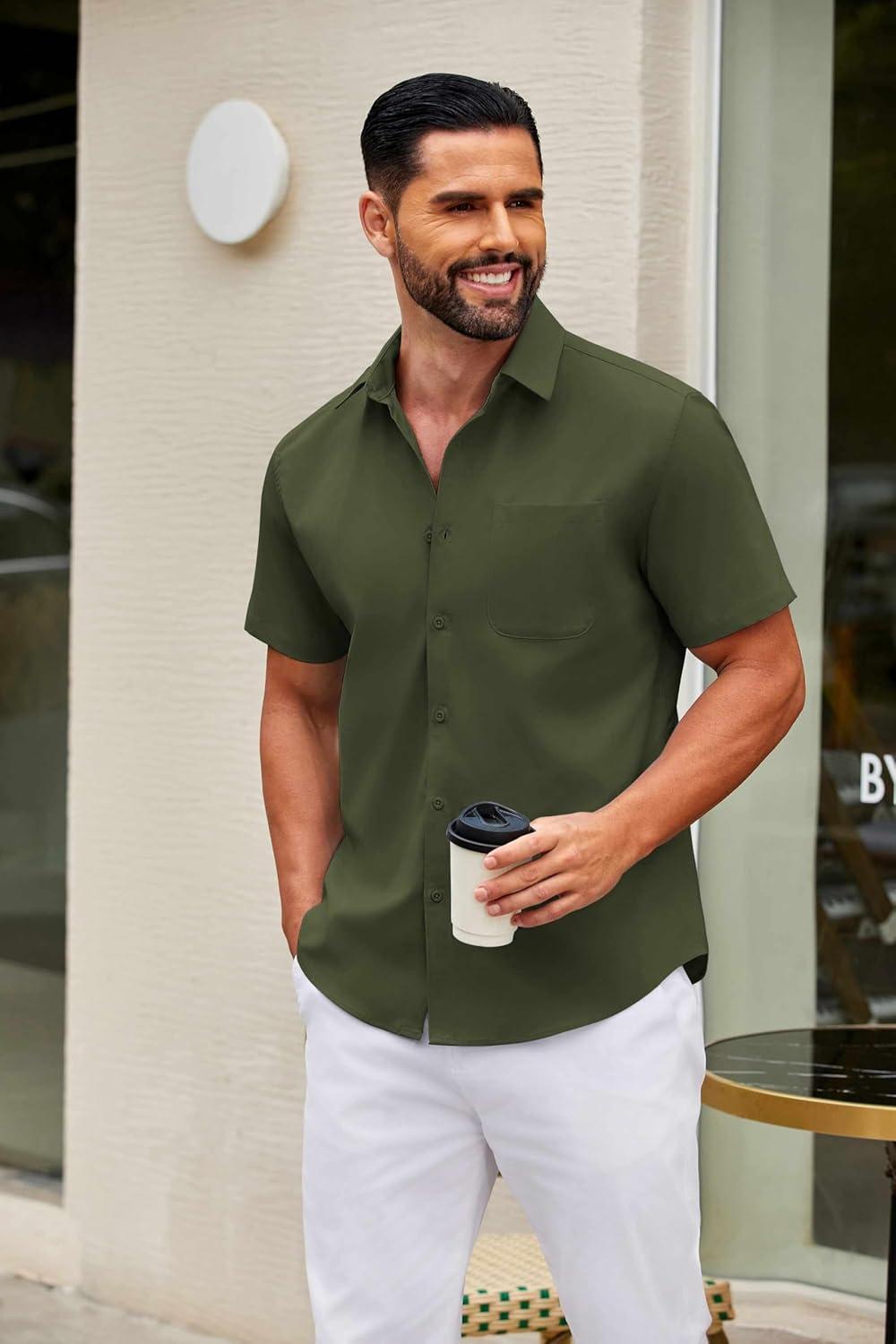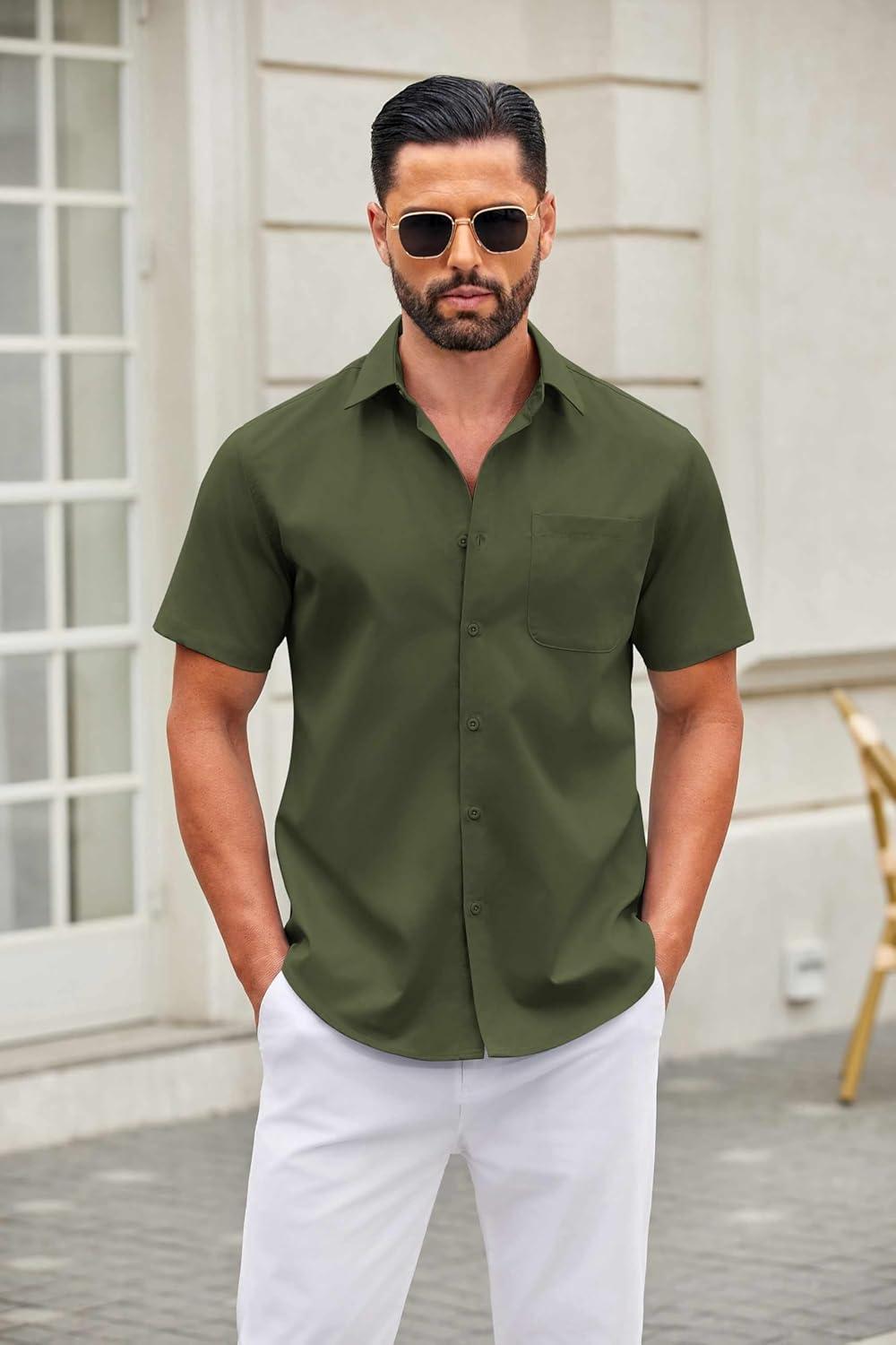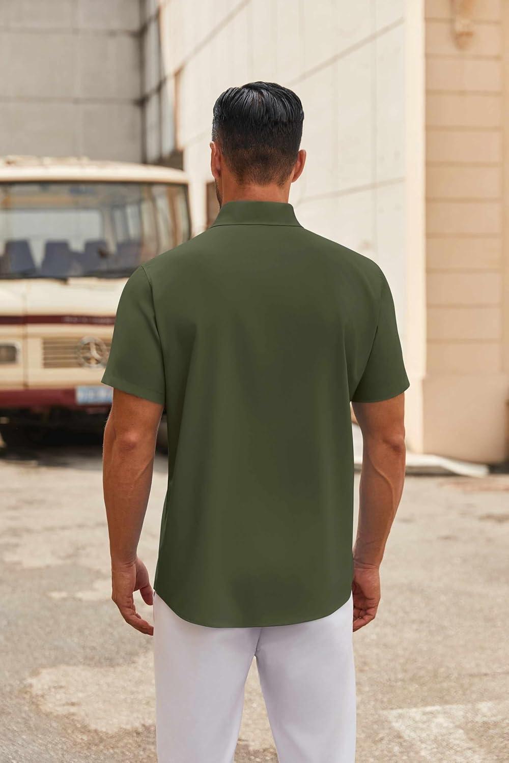 COOFANDY Mens Short Sleeve Button Down Shirts Casual Dress Shirt Untucked Shirts with Pocket(Army Green)