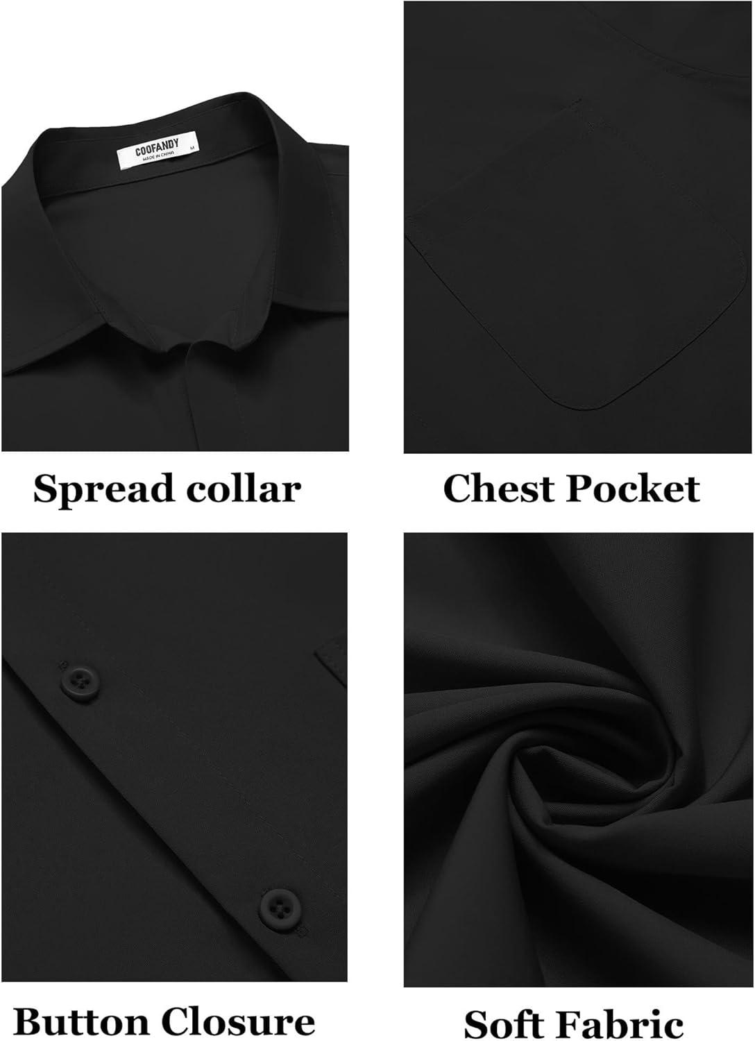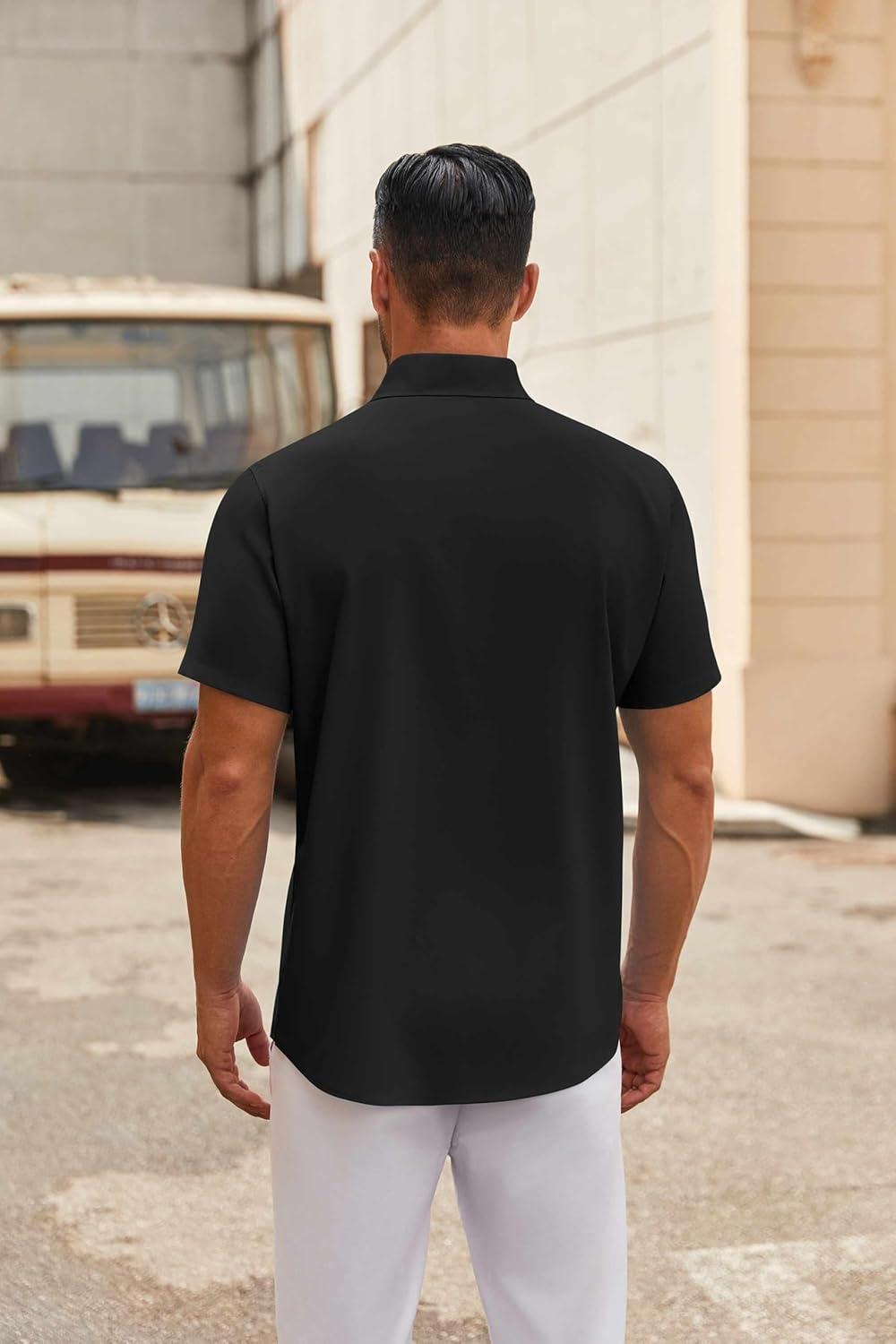 COOFANDY Mens Short Sleeve Button Down Shirts Casual Dress Shirt Untucked Shirts with Pocket(Black)