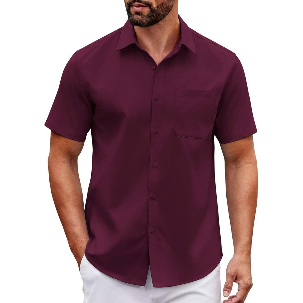 COOFANDY Mens Short Sleeve Button Down Shirts Casual Dress Shirt Untucked Shirts with Pocket(Wine Red)