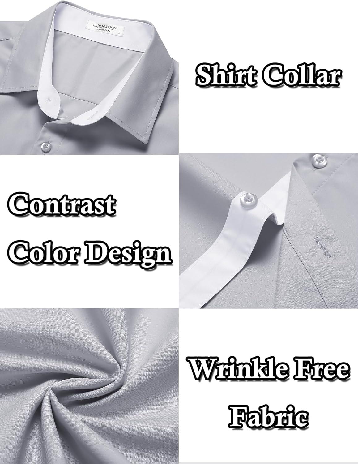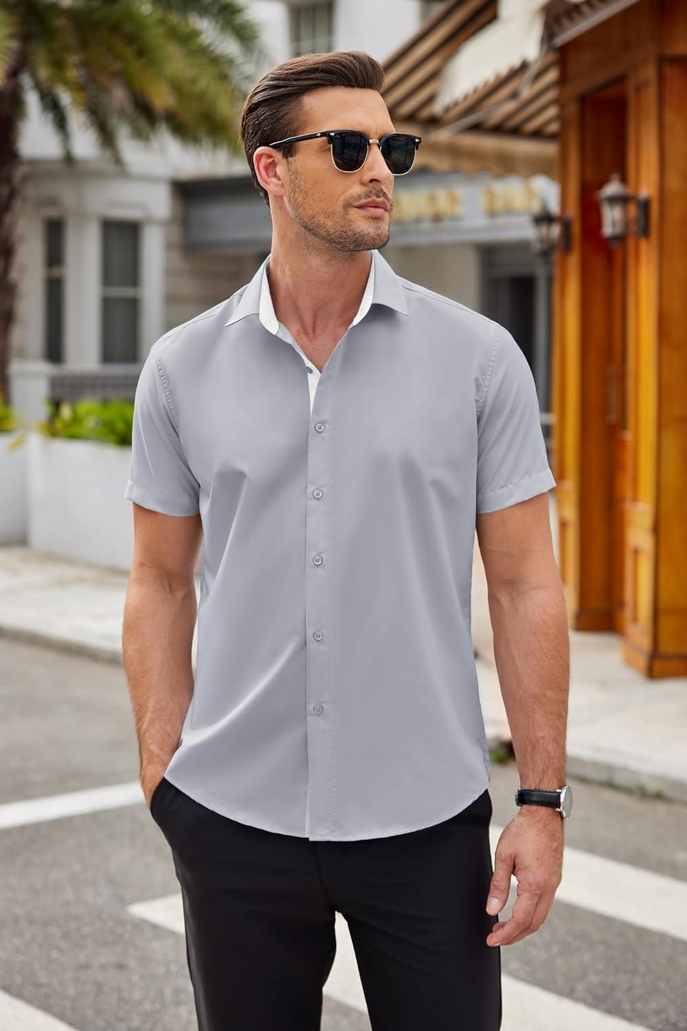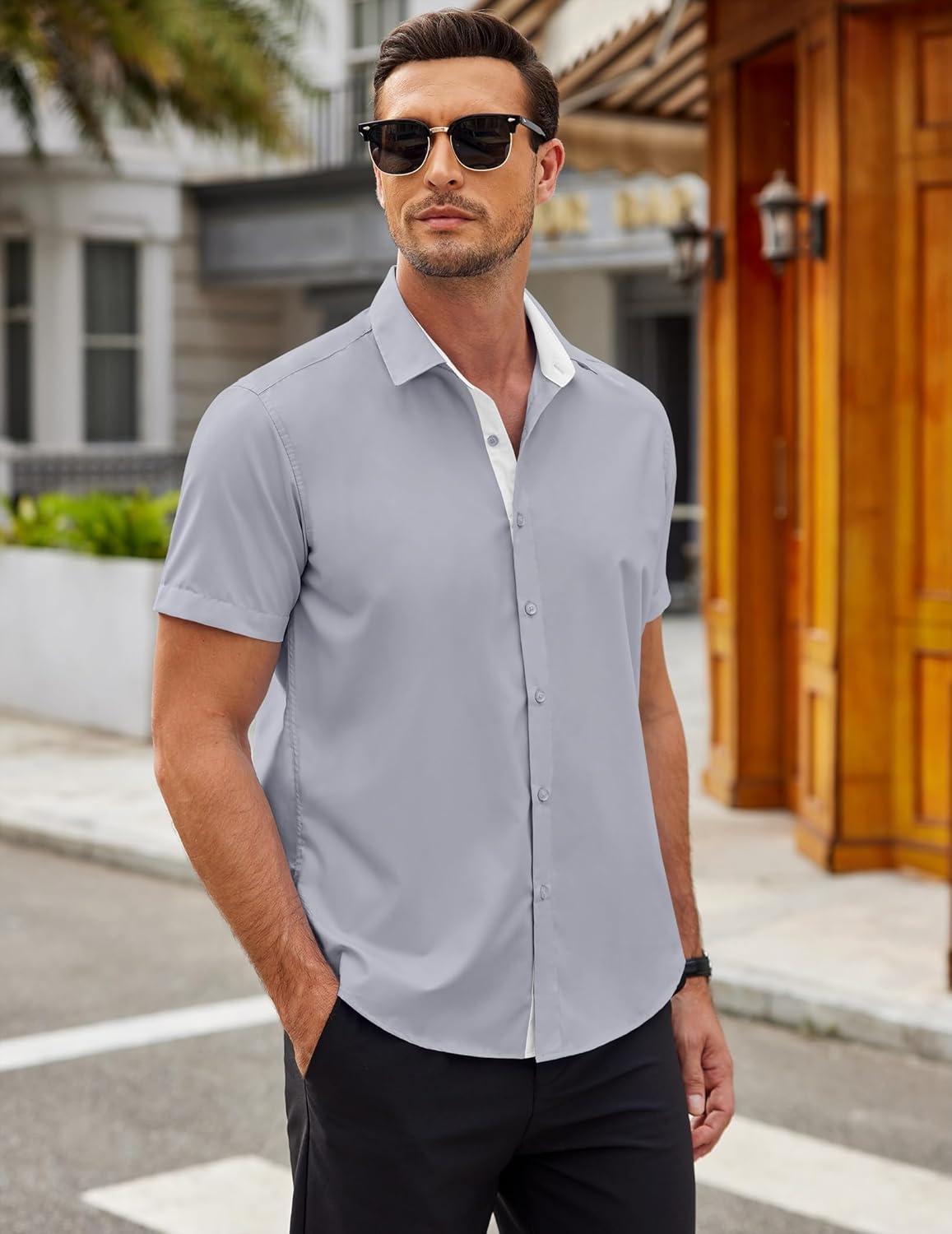 COOFANDY Men’s Short Sleeve Button Down Shirts Casual Summer Dress Untucked Shirts(Light Grey)