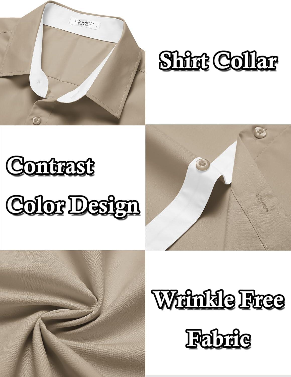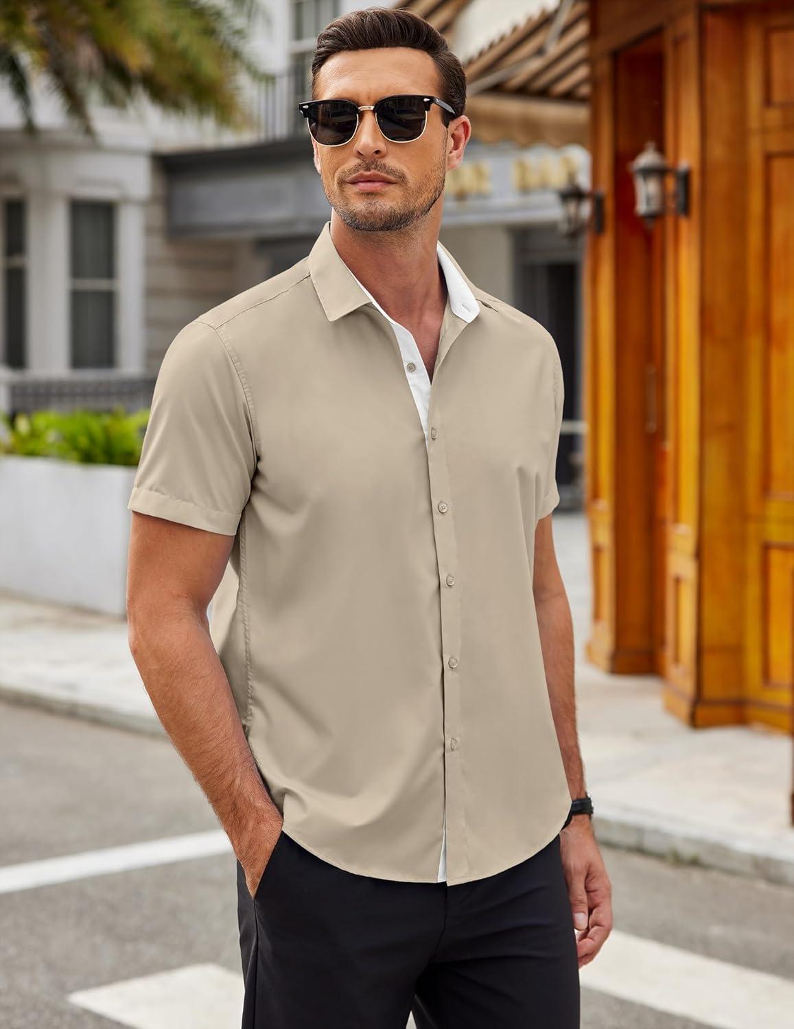 COOFANDY Men’s Short Sleeve Button Down Shirts Casual Summer Dress Untucked Shirts(Moon Grey)