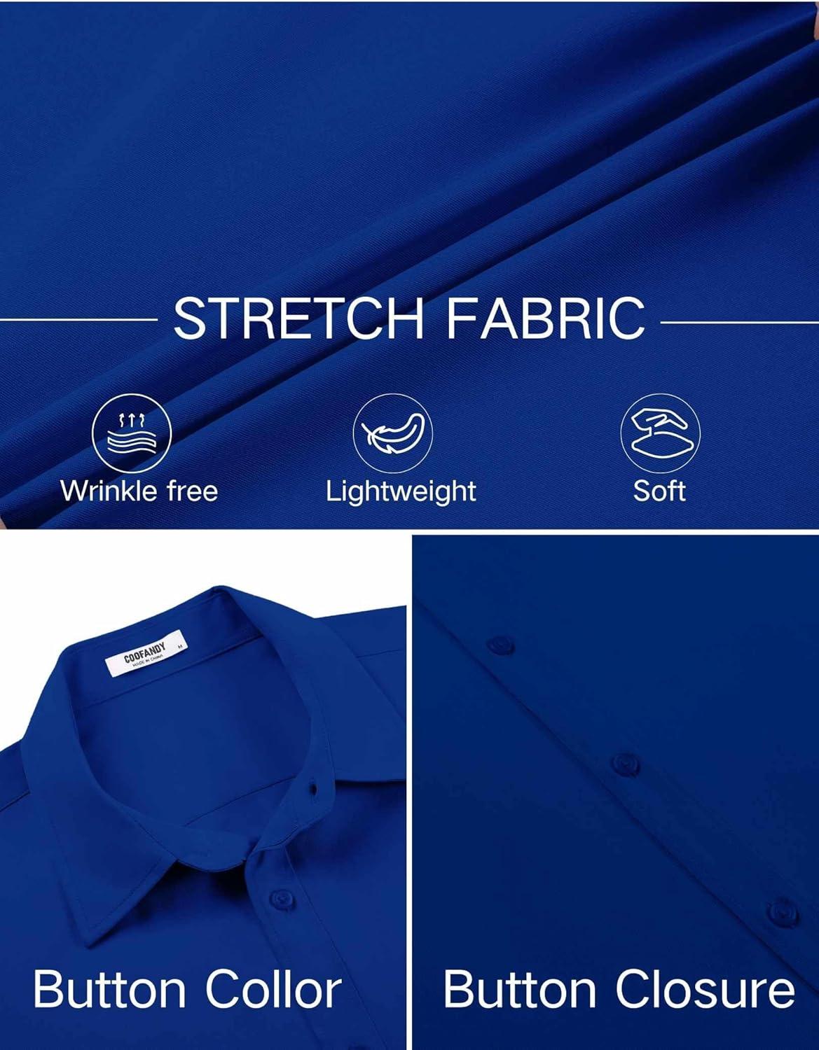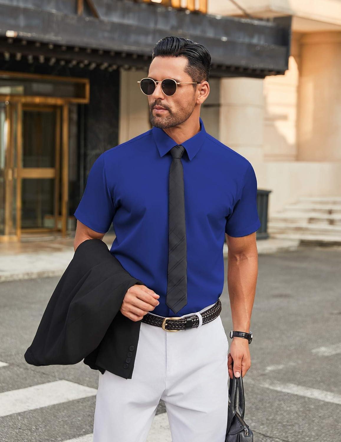 COOFANDY Men’s Short Sleeve Button Down Shirts Casual Summer Dress Untucked Shirts(Royal Azure)