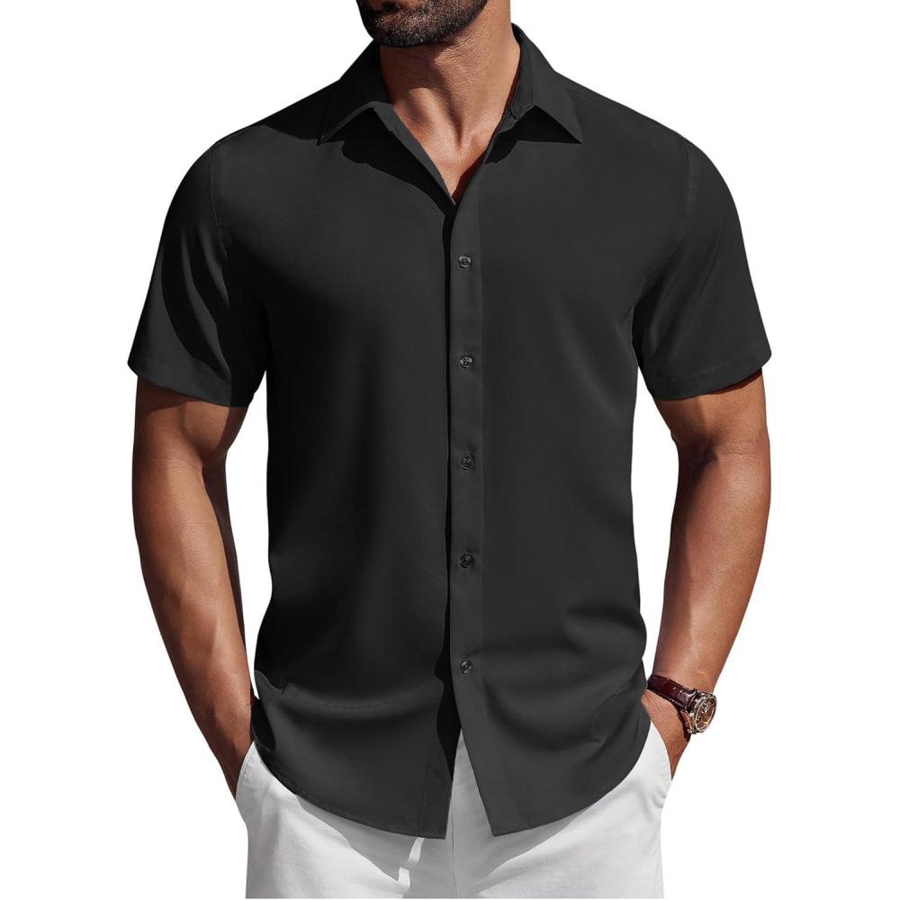 COOFANDY Mens Short Sleeve Button Down Shirts Casual Summer Shirt Untucked Dress Shirts(Black)
