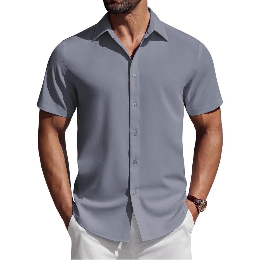 COOFANDY Mens Short Sleeve Button Down Shirts Casual Summer Shirt Untucked Dress Shirts(Dark Grey)