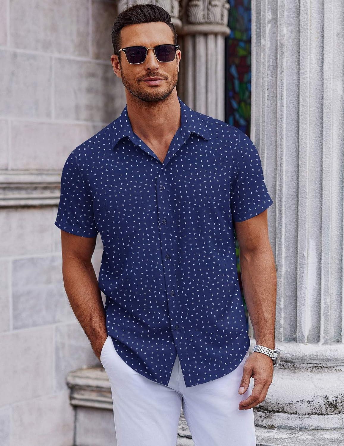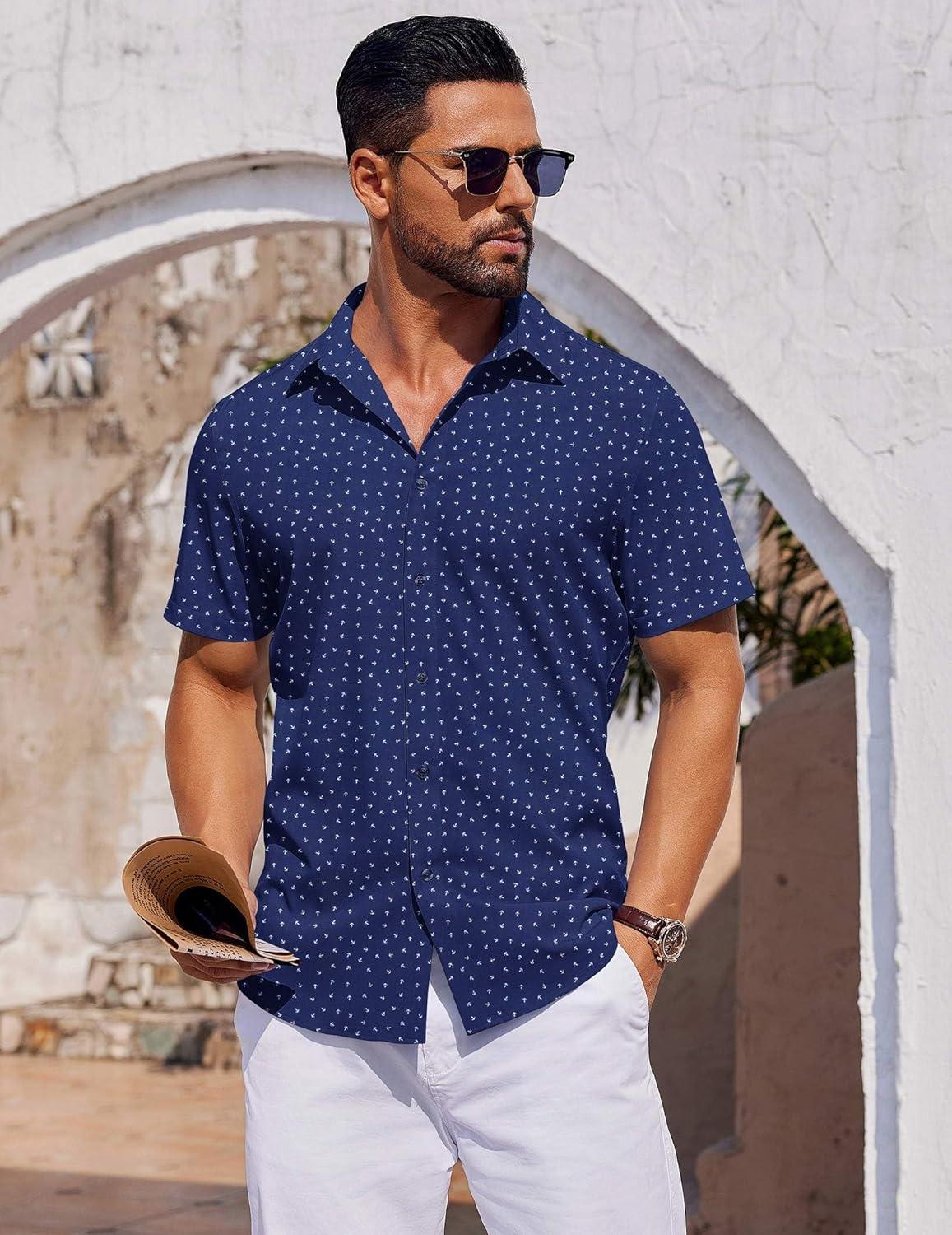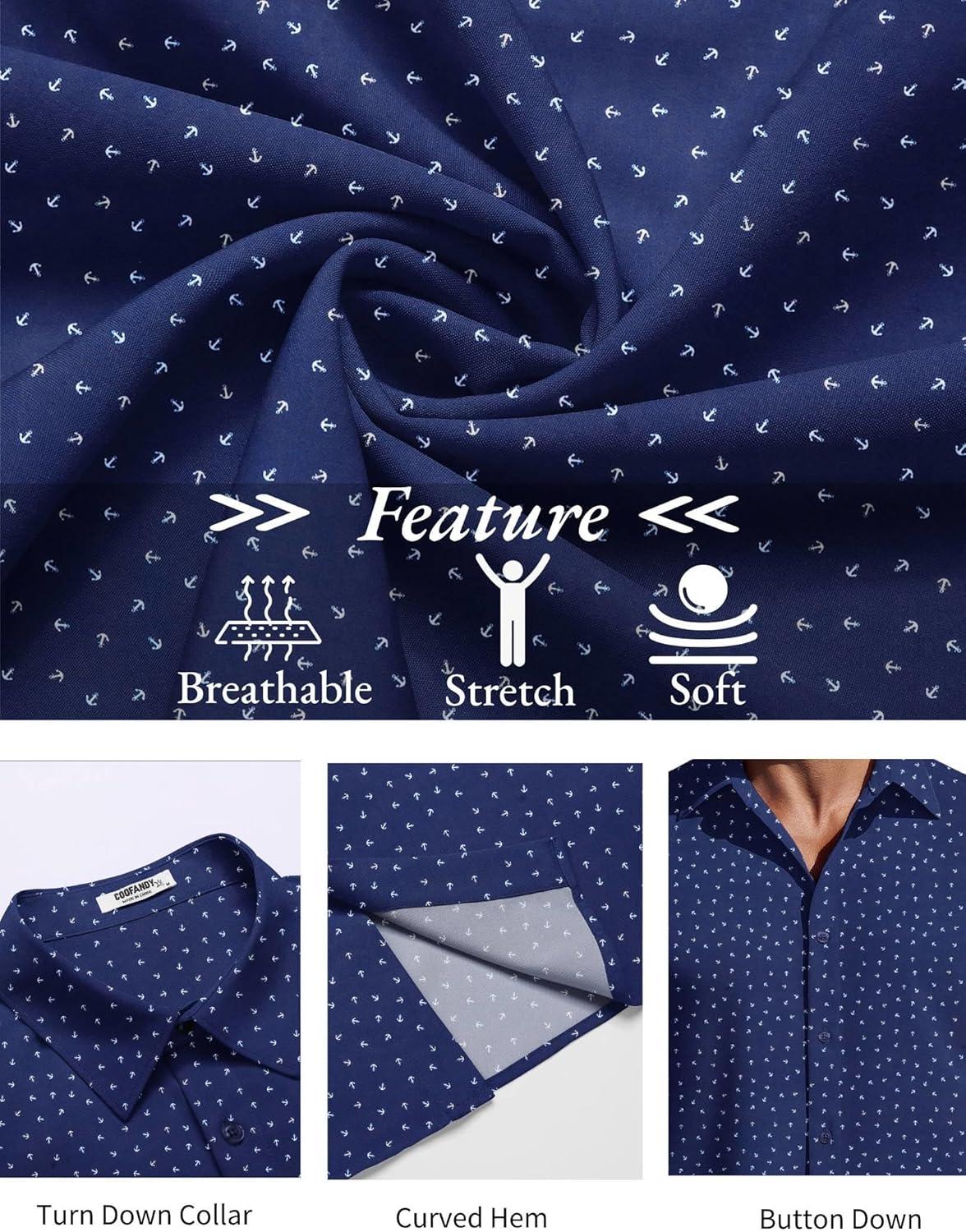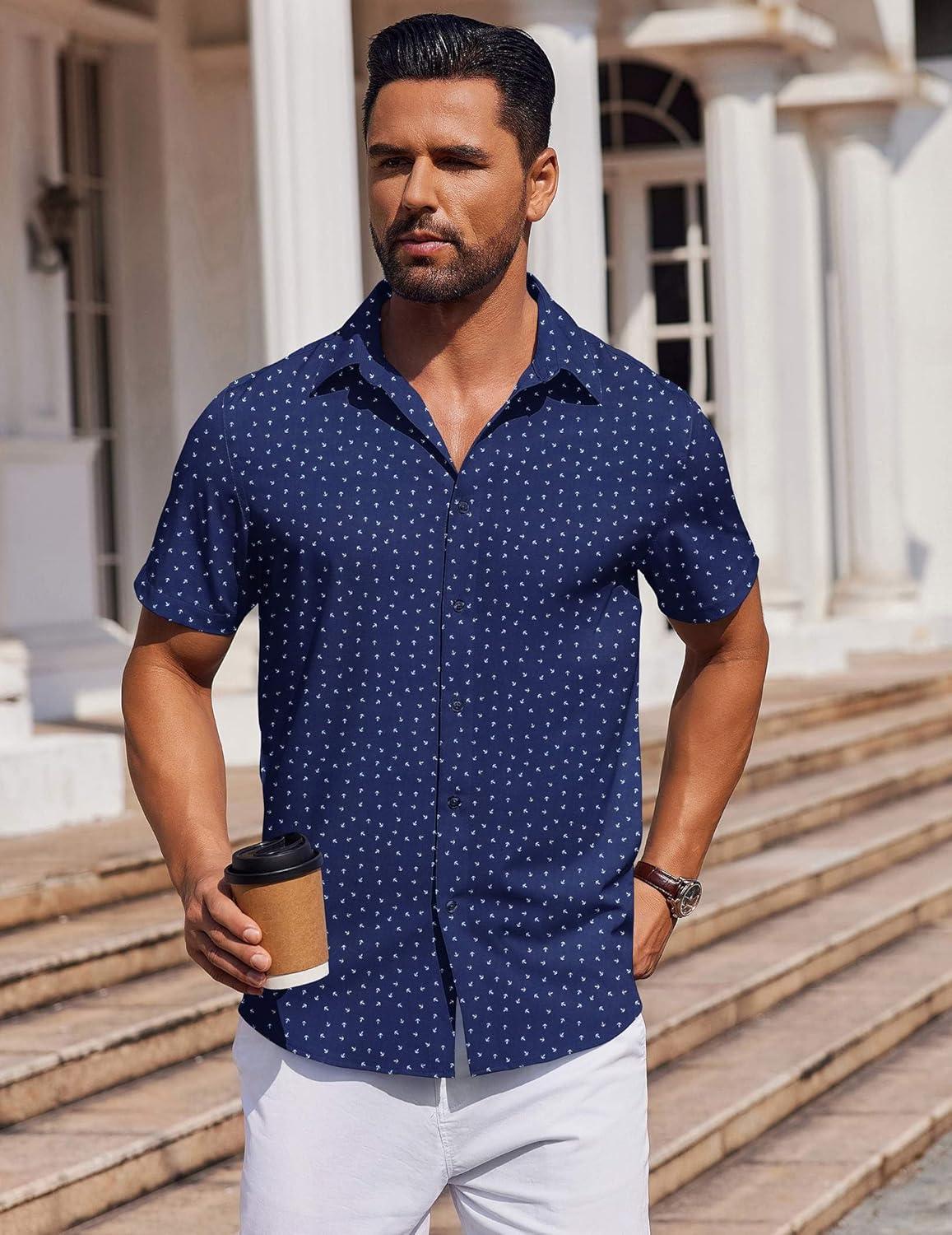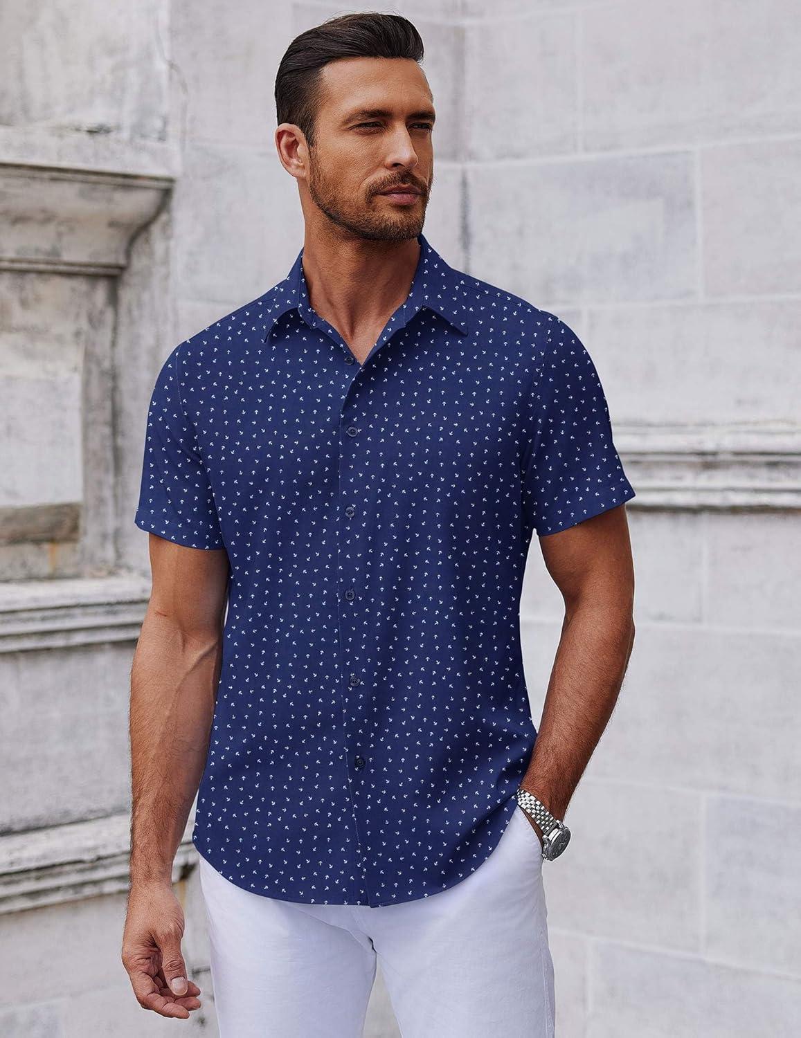 COOFANDY Mens Short Sleeve Button Down Shirts Casual Summer Shirt Untucked Dress Shirts(Navy Blue-anchor)