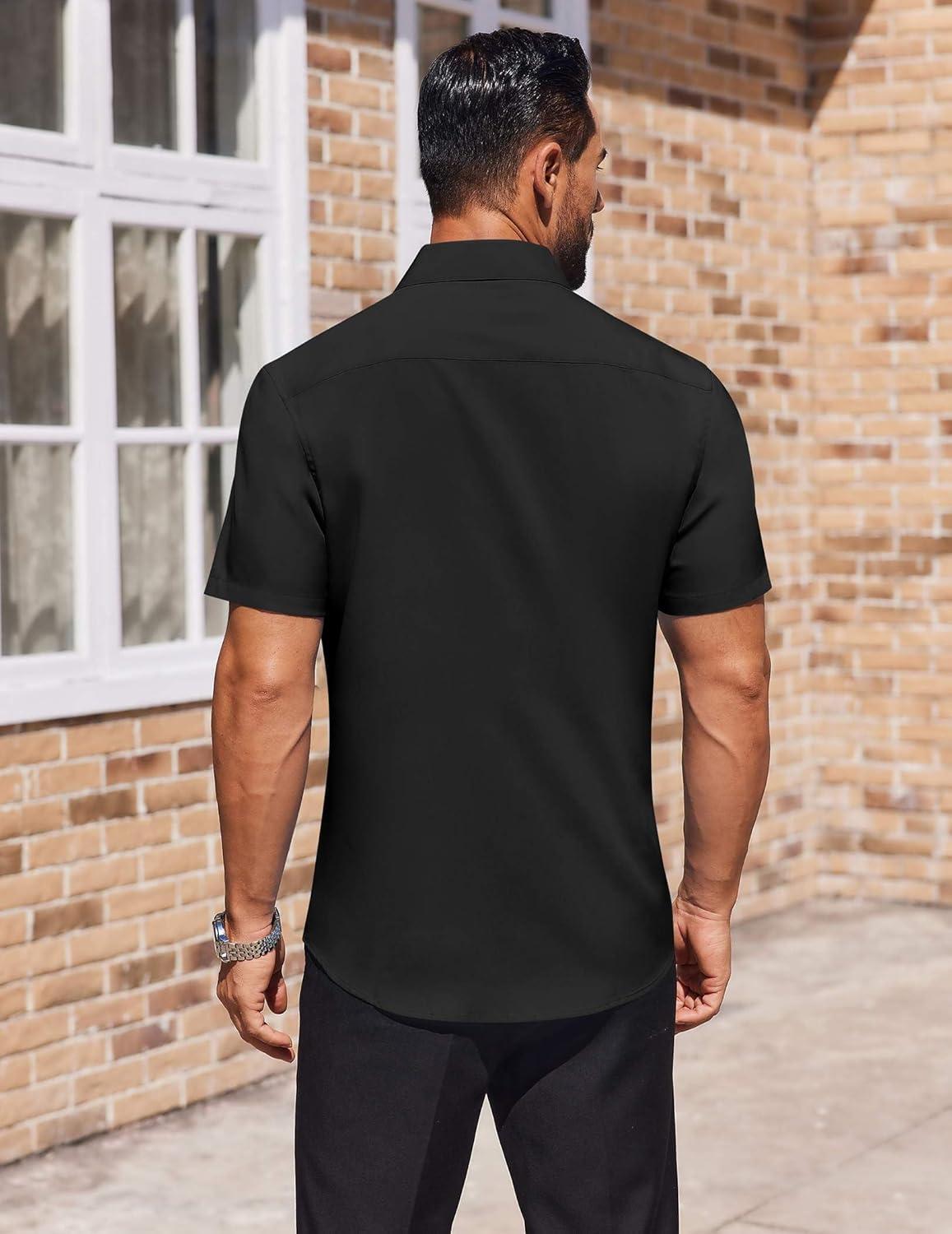 COOFANDY Mens Short Sleeve Button Down Shirts Lightweight Stain Shield Business Casual Dress Shirt Wrinkle Free(Black)