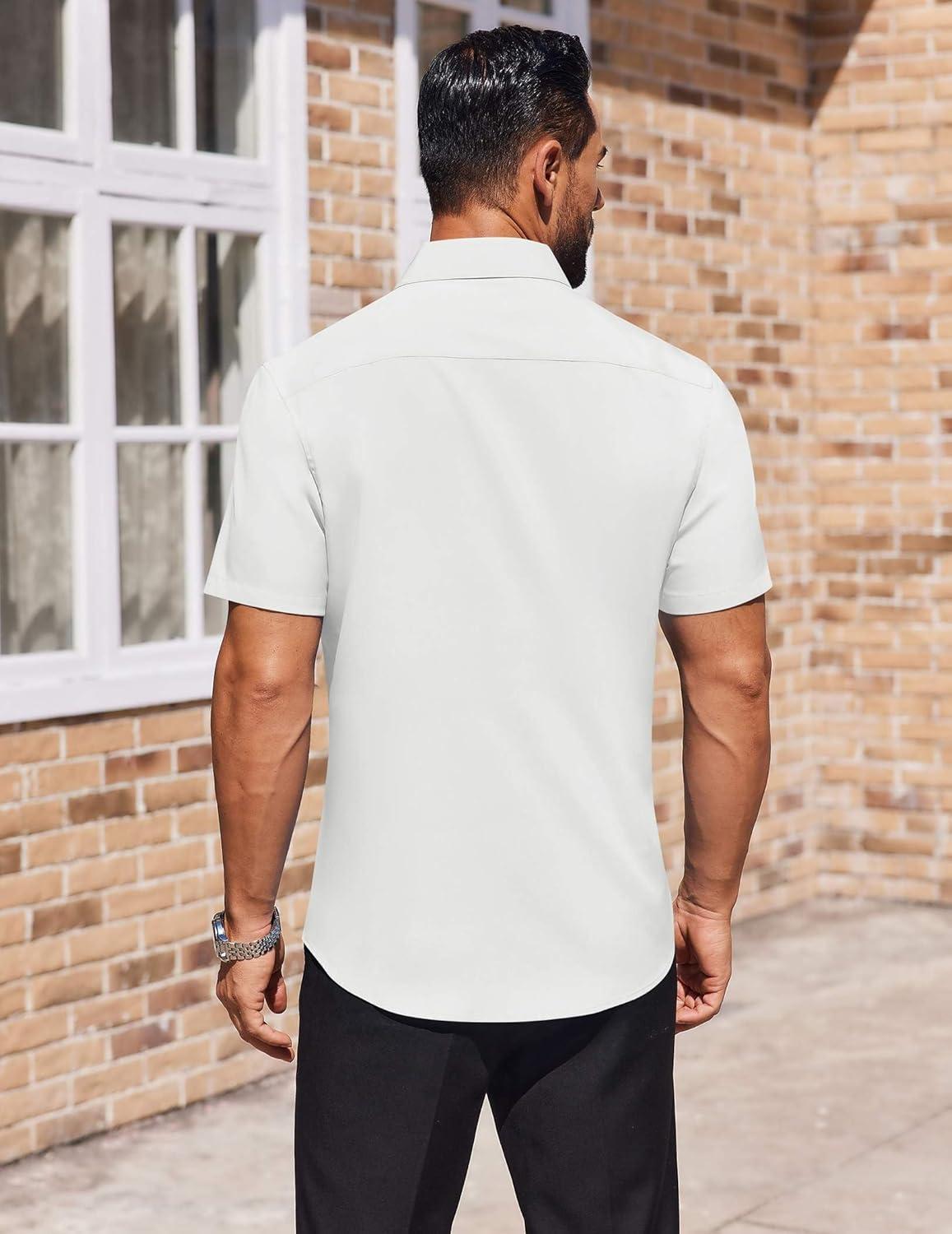 COOFANDY Mens Short Sleeve Button Down Shirts Lightweight Stain Shield Business Casual Dress Shirt Wrinkle Free(White)