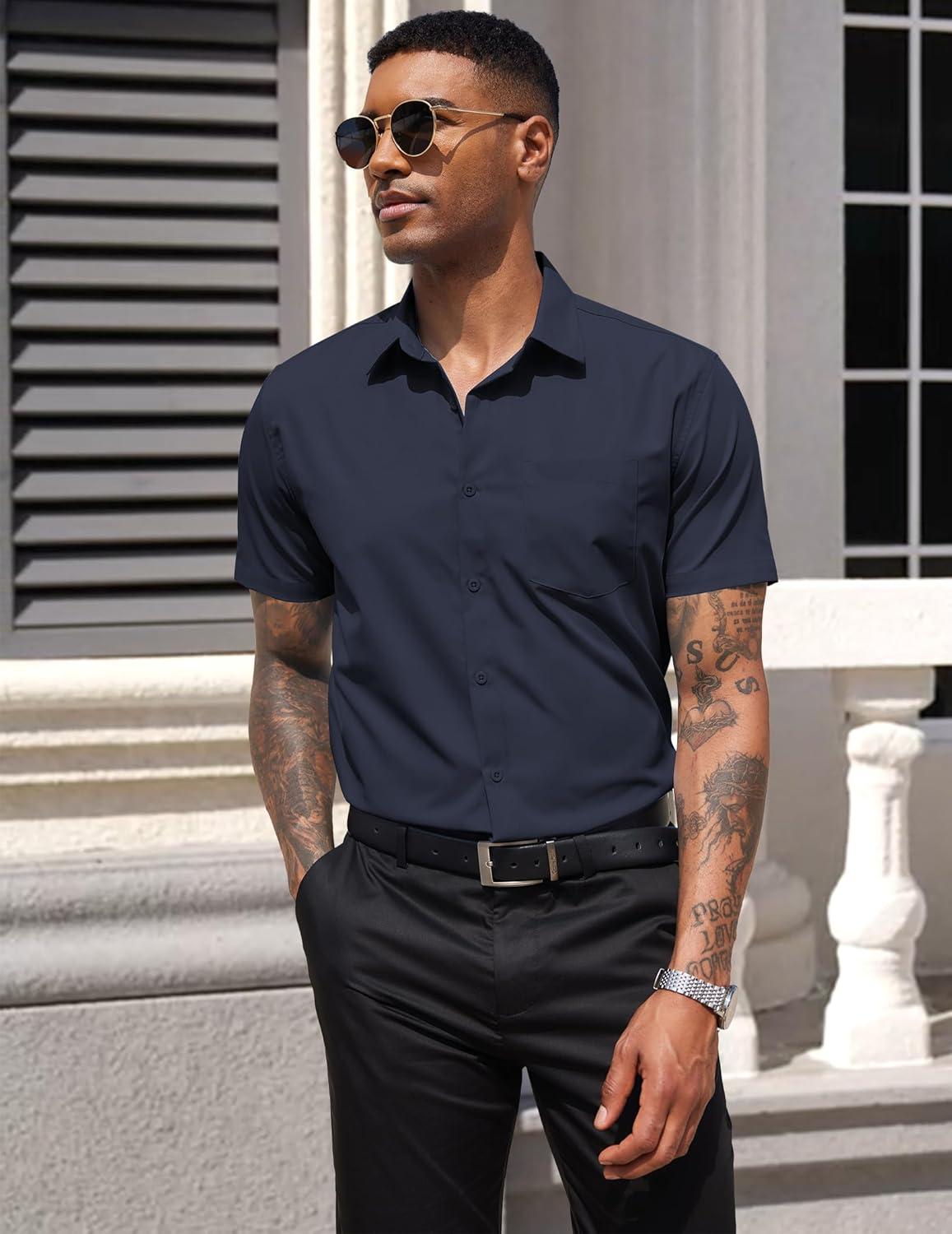 COOFANDY Men’s Short Sleeve Casual Button Down Shirt Business Untucked Dress Shirts with Pocket(Dark Navy)