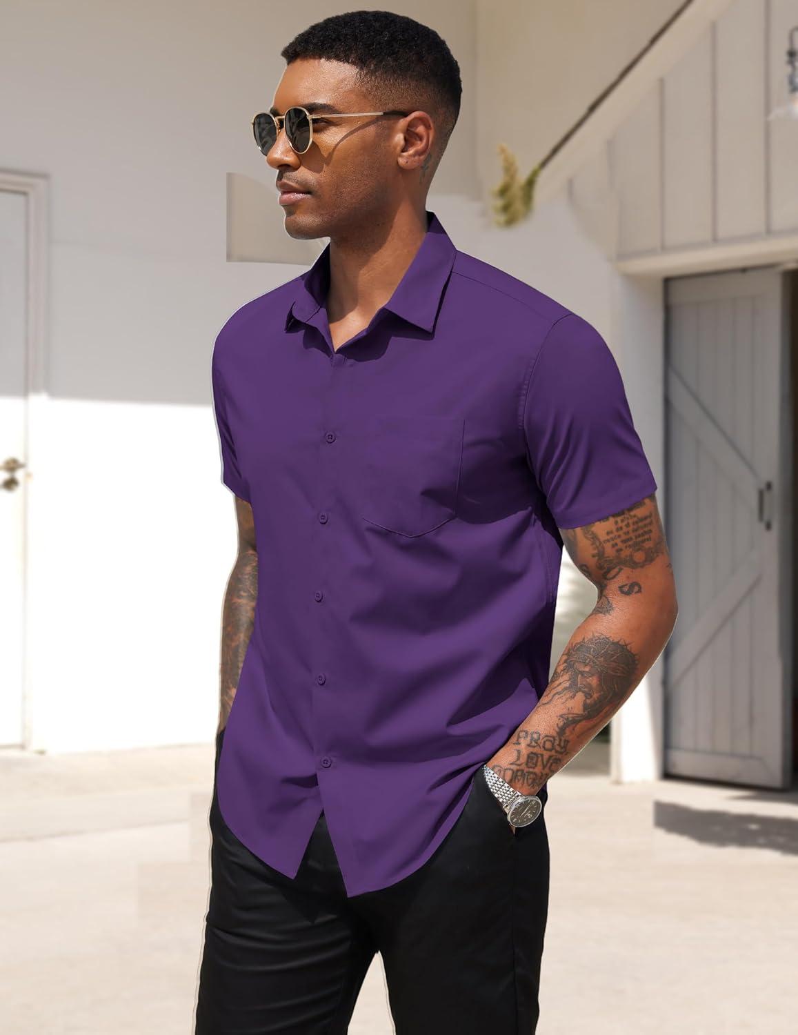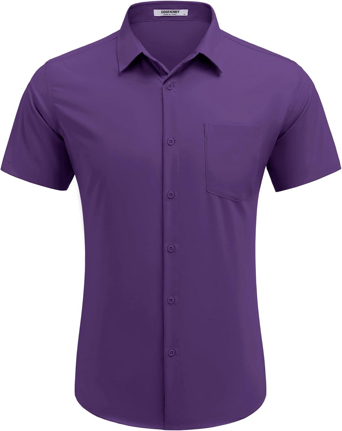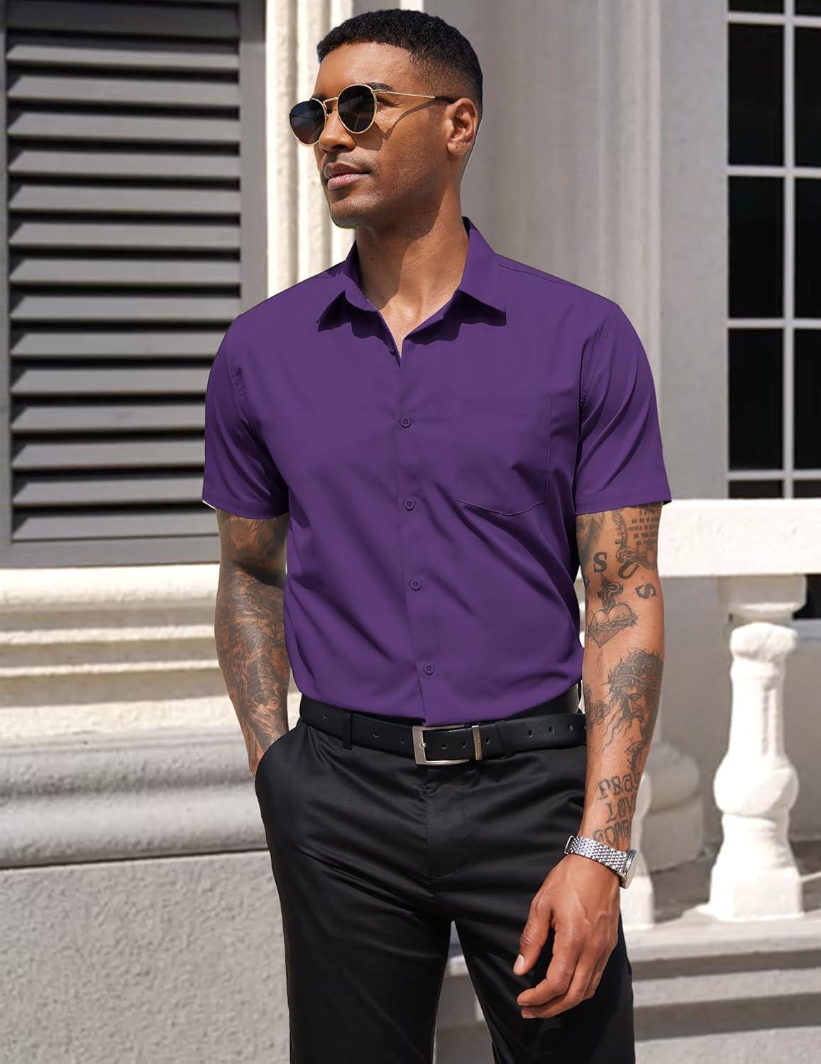 COOFANDY Men’s Short Sleeve Casual Button Down Shirt Business Untucked Dress Shirts with Pocket(Dark Purple)