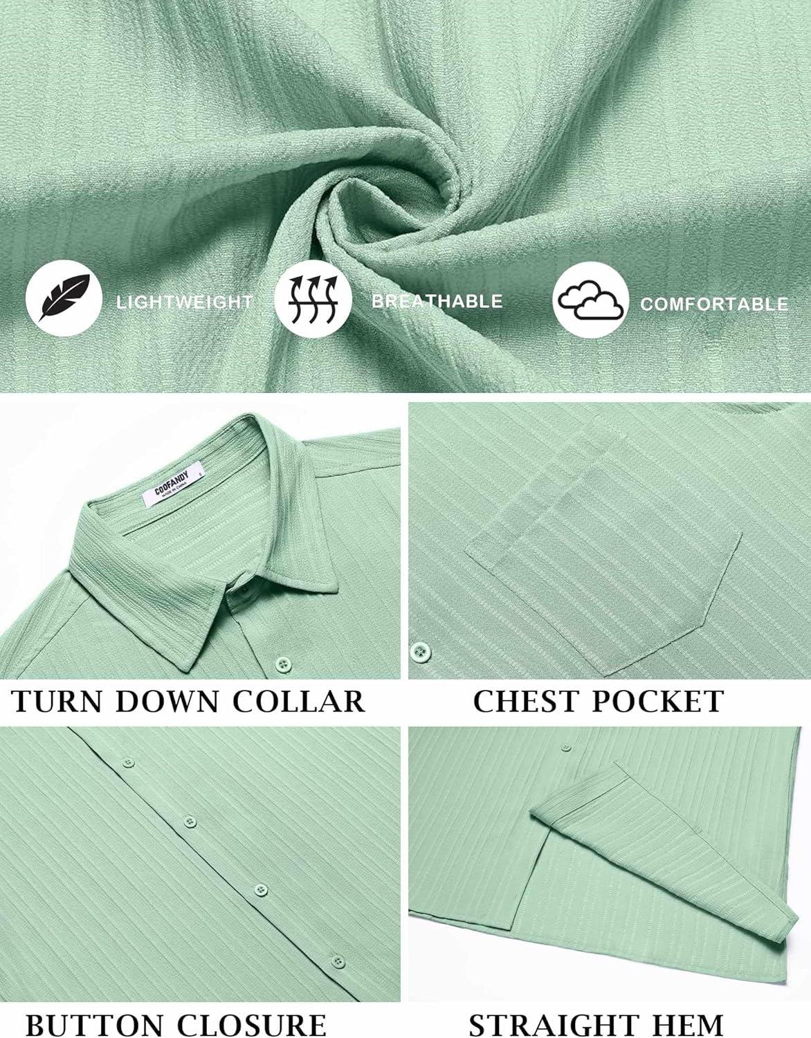 COOFANDY Men’s Short Sleeve Casual Button Down Shirts Textured Summer Beach Shirt with Pocket(Light Green)