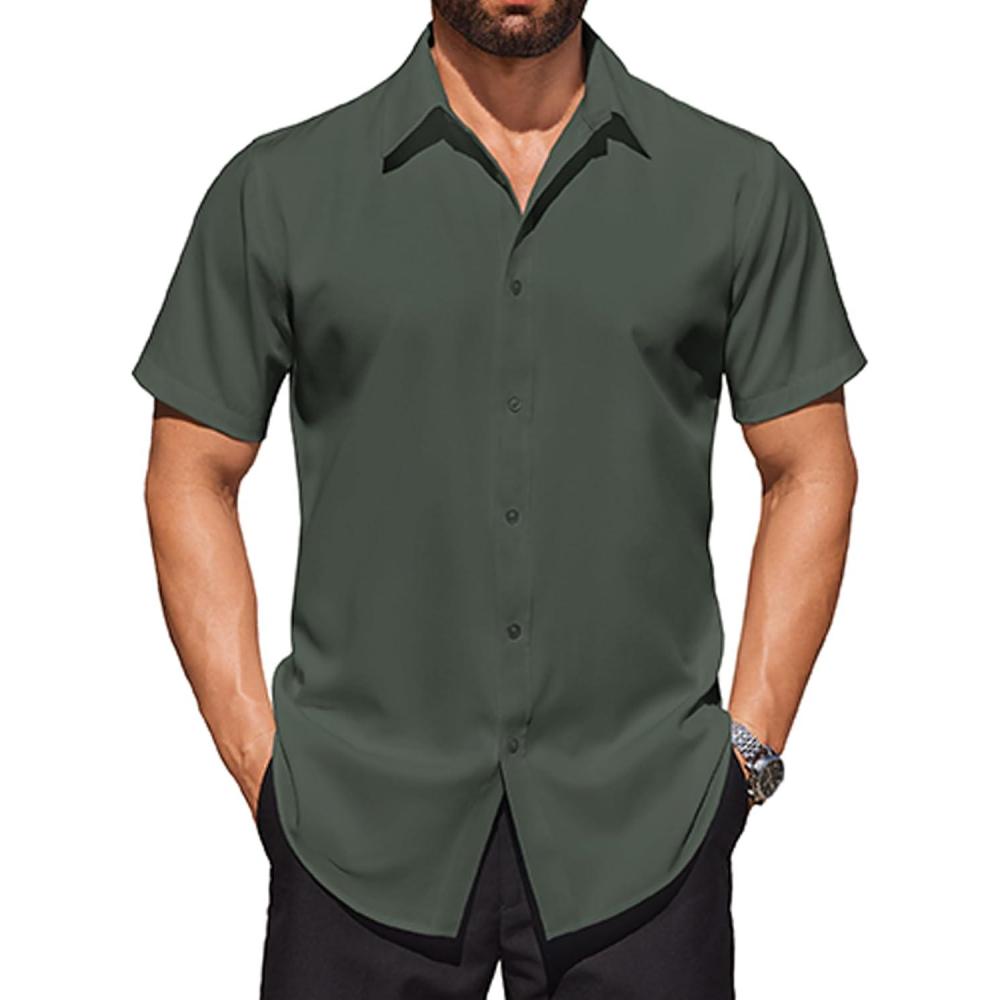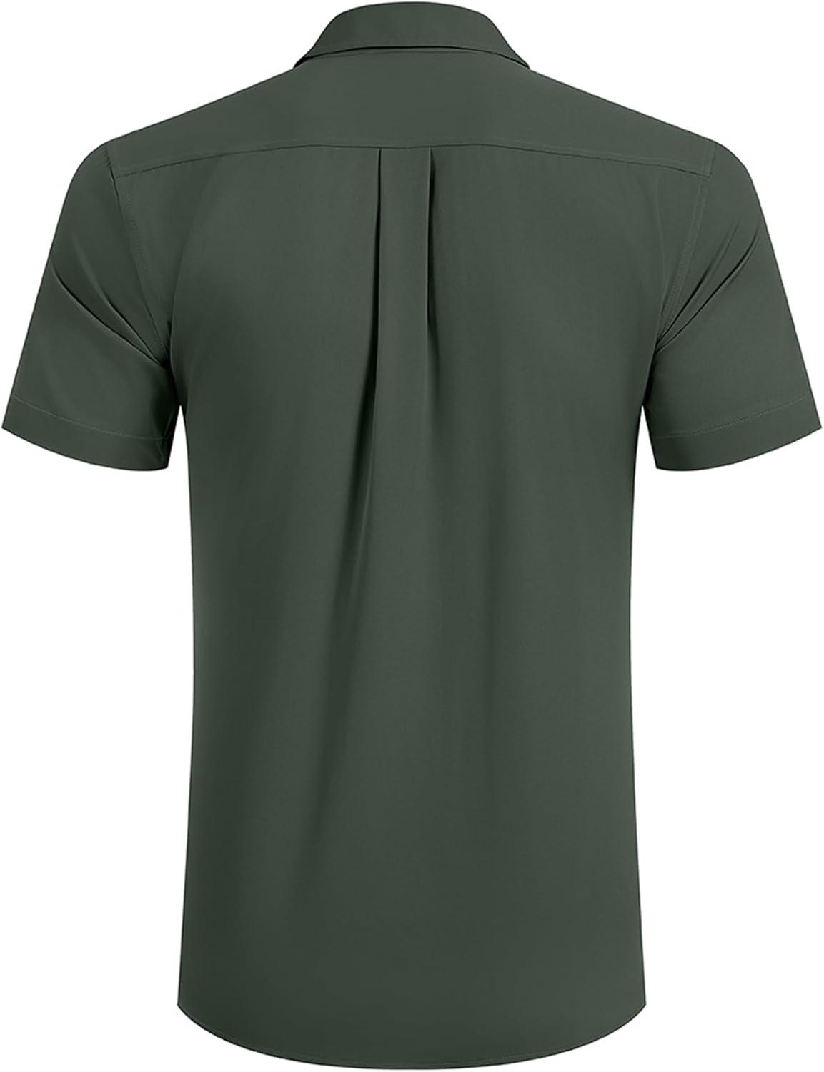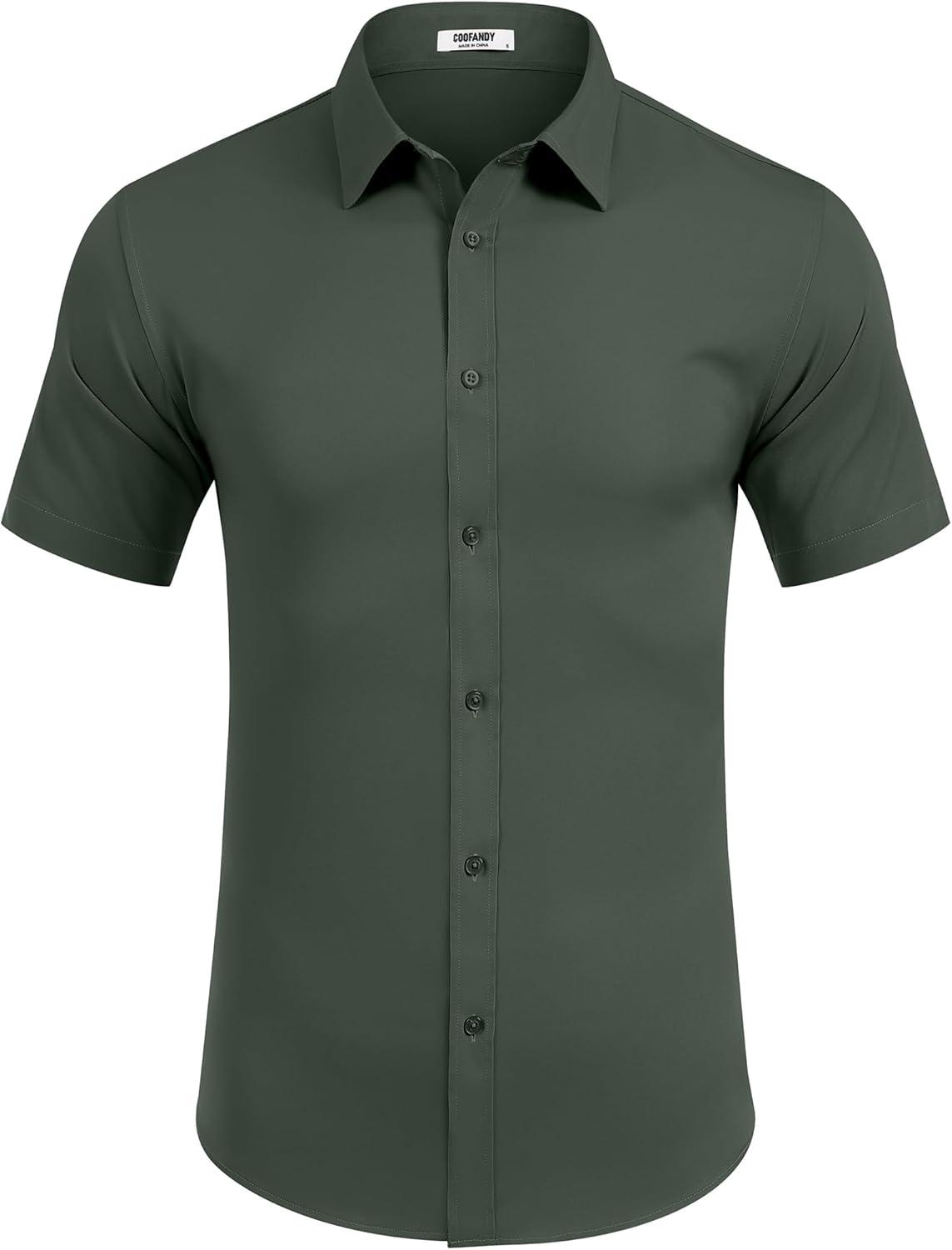 COOFANDY Mens Short Sleeve Dress Shirts Stretch Wrinkle Free Button Down Shirt Casual Summer Top(Army Green)