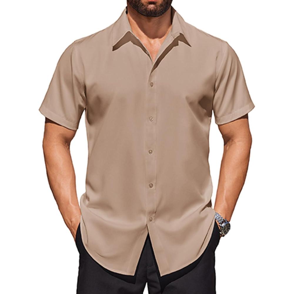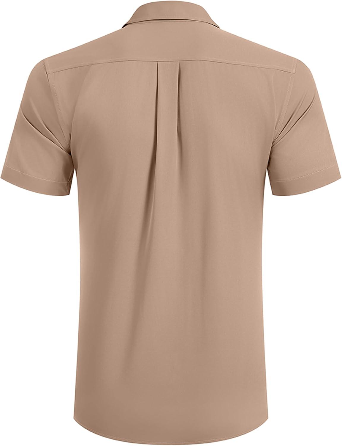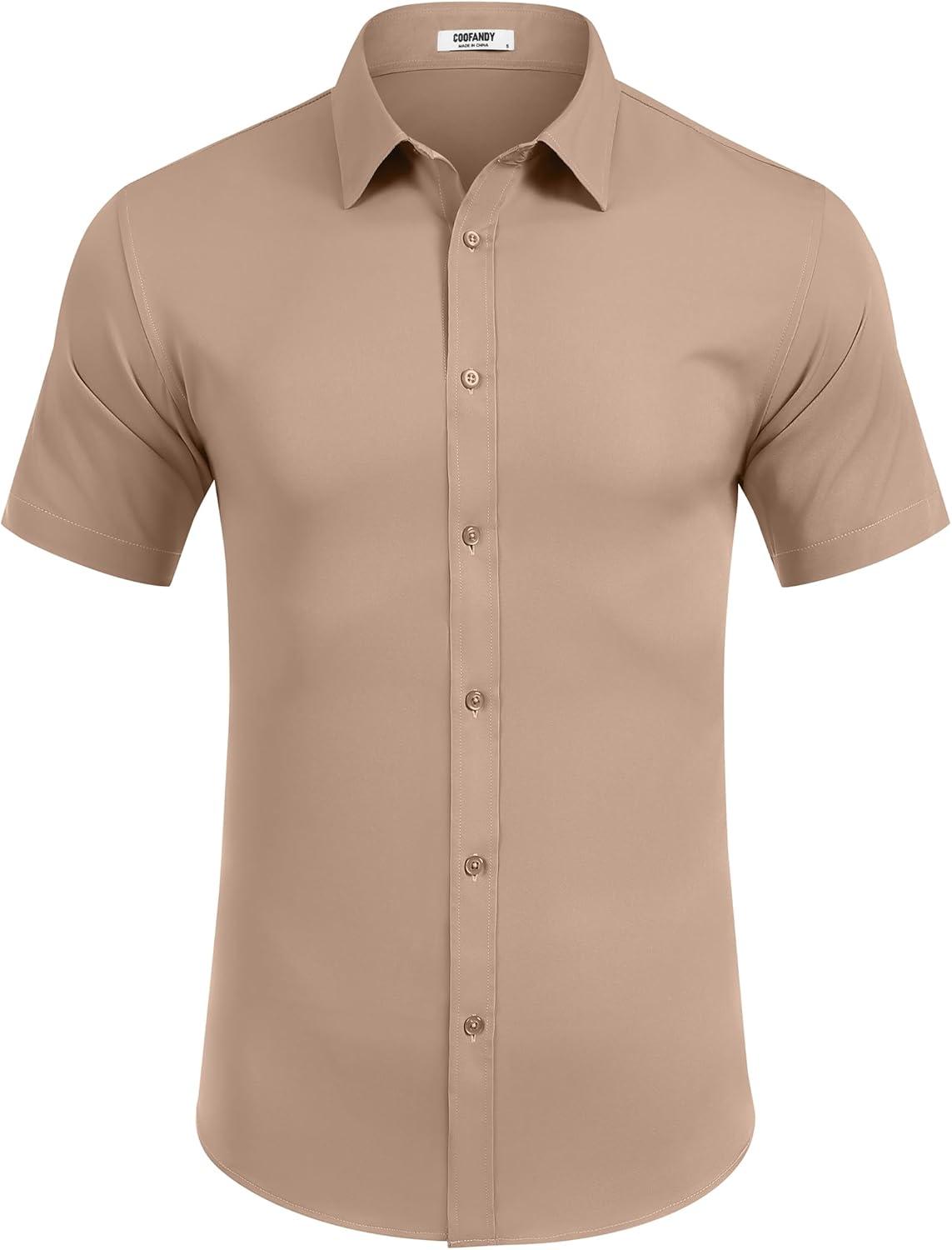 COOFANDY Mens Short Sleeve Dress Shirts Stretch Wrinkle Free Button Down Shirt Casual Summer Top(Khaki)