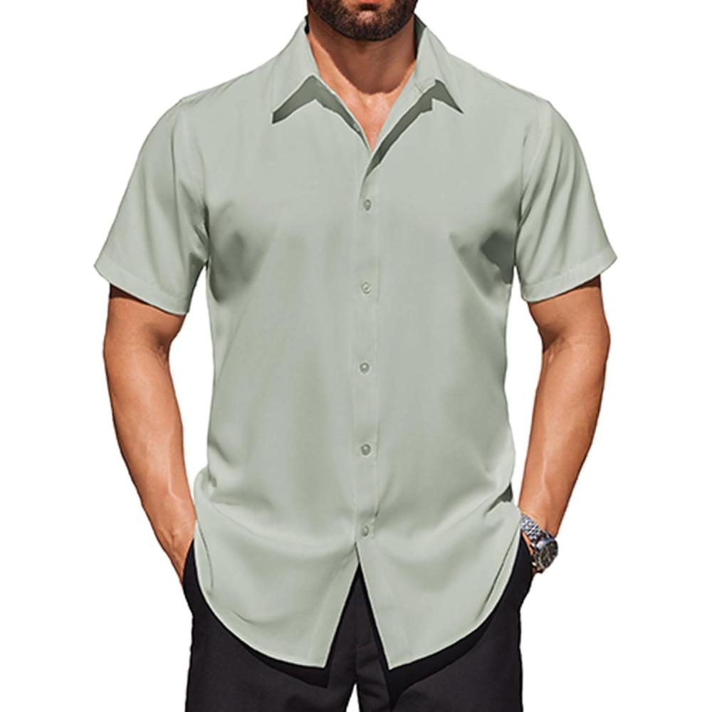COOFANDY Mens Short Sleeve Dress Shirts Stretch Wrinkle Free Button Down Shirt Casual Summer Top(Light Green)
