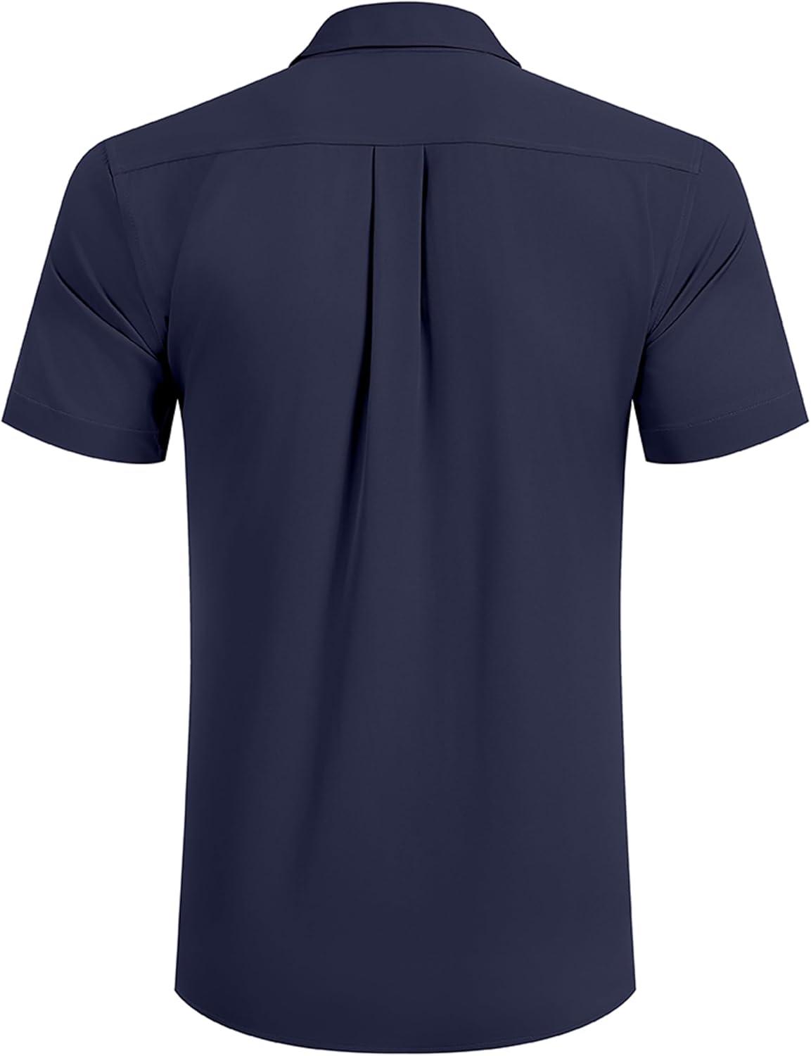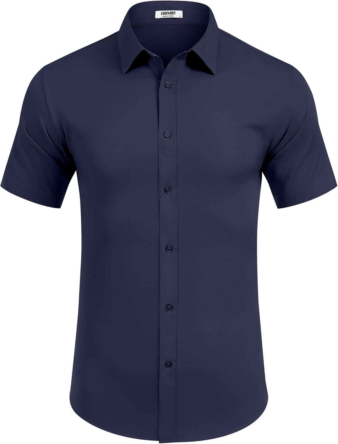 COOFANDY Mens Short Sleeve Dress Shirts Stretch Wrinkle Free Button Down Shirt Casual Summer Top(Navy Blue)