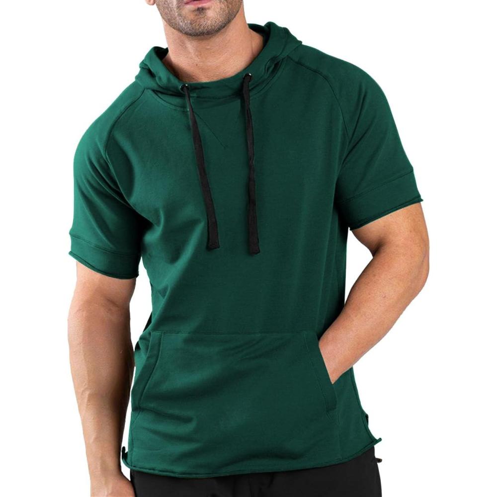 COOFANDY Men’s Short Sleeve Hoodie Workout Gym Sweatshirt Muscle Fit Fashion Athletic Hoodies Pullover Cotton Hooded T-Shirts(Green)