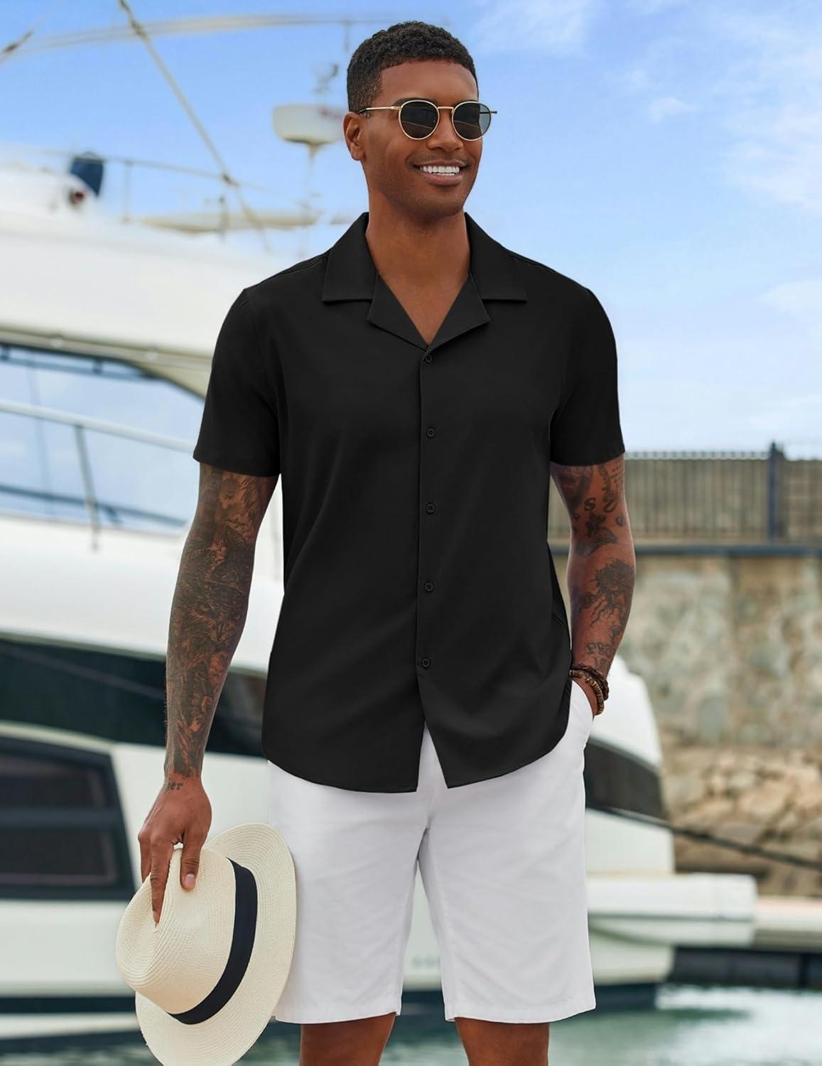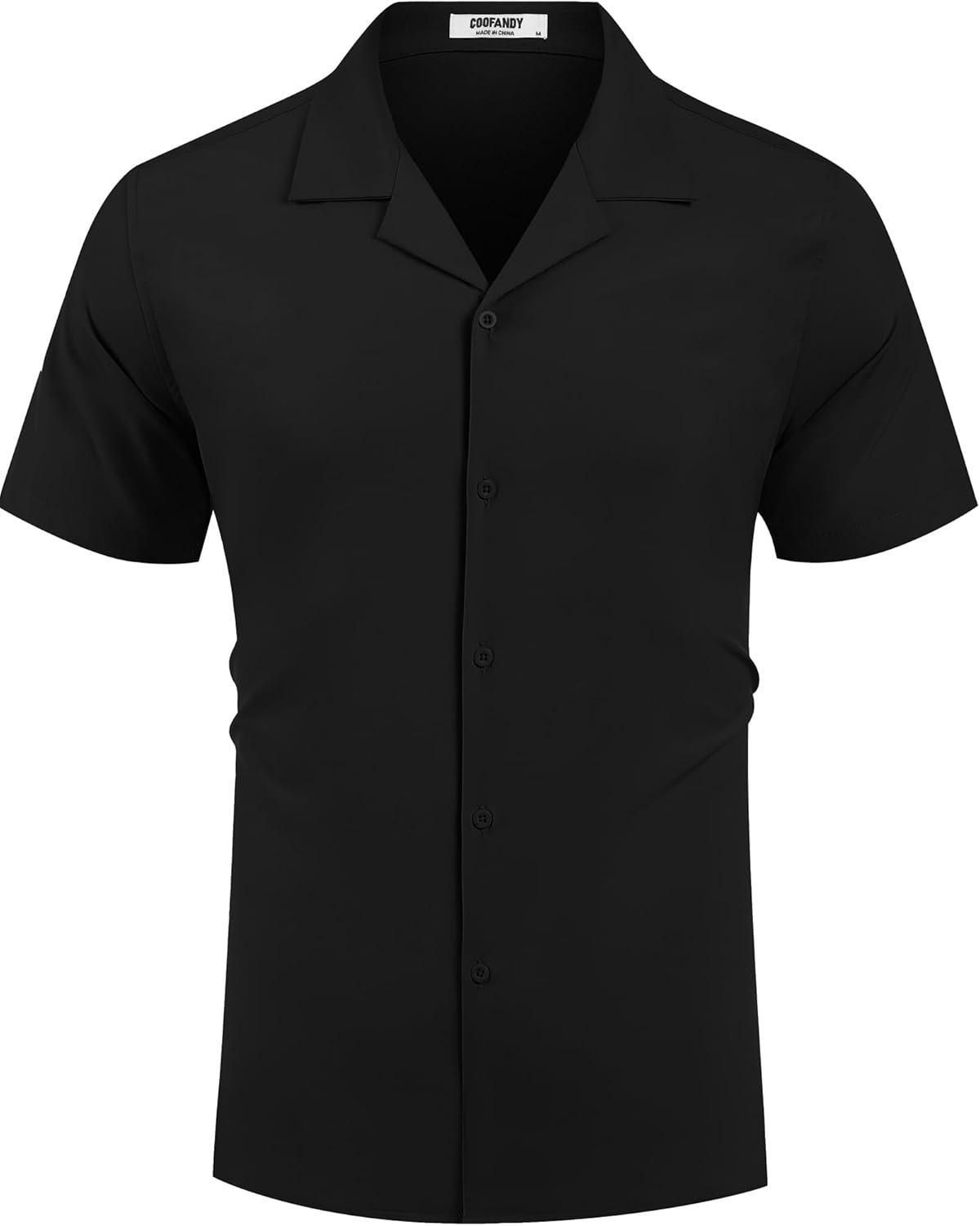 COOFANDY Mens Short Sleeve Shirts Casual Button Down Shirts Cuban Textured Summer Beach Shirts(Black)