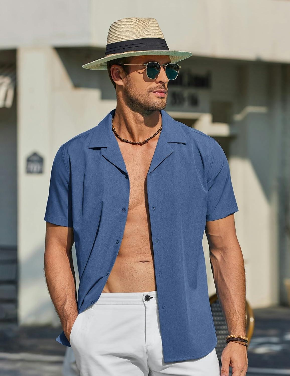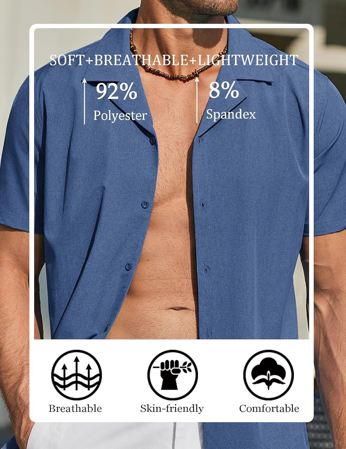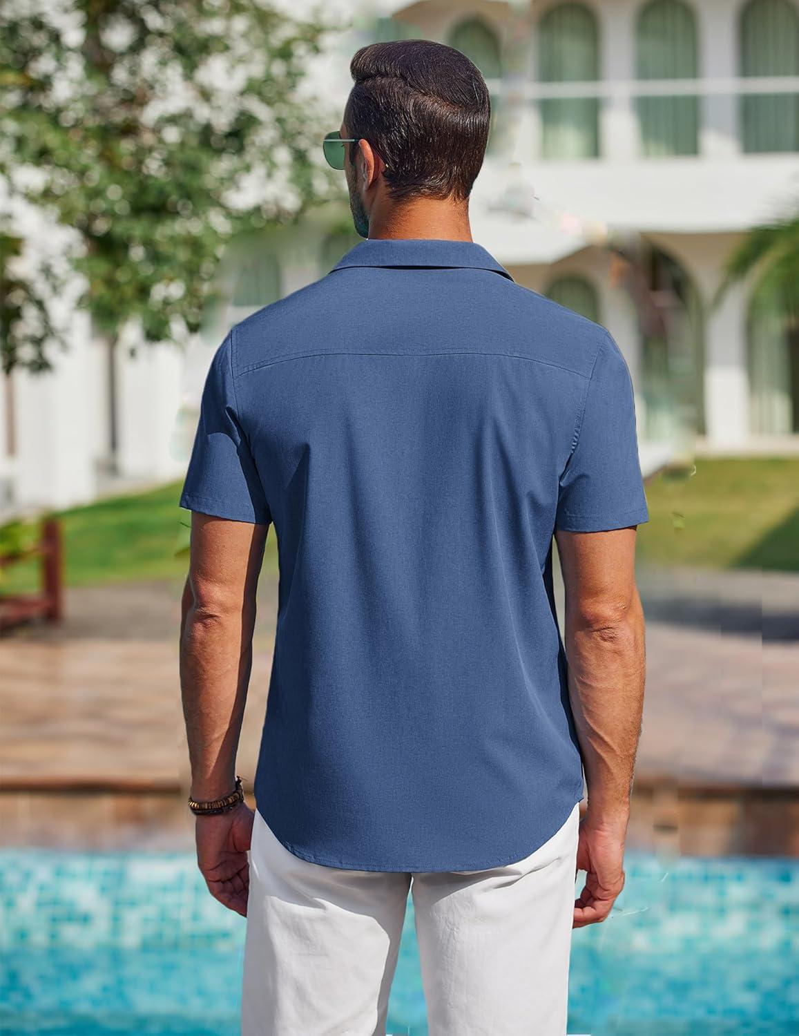 COOFANDY Mens Short Sleeve Shirts Casual Button Down Shirts Cuban Textured Summer Beach Shirts(Navy Blue)