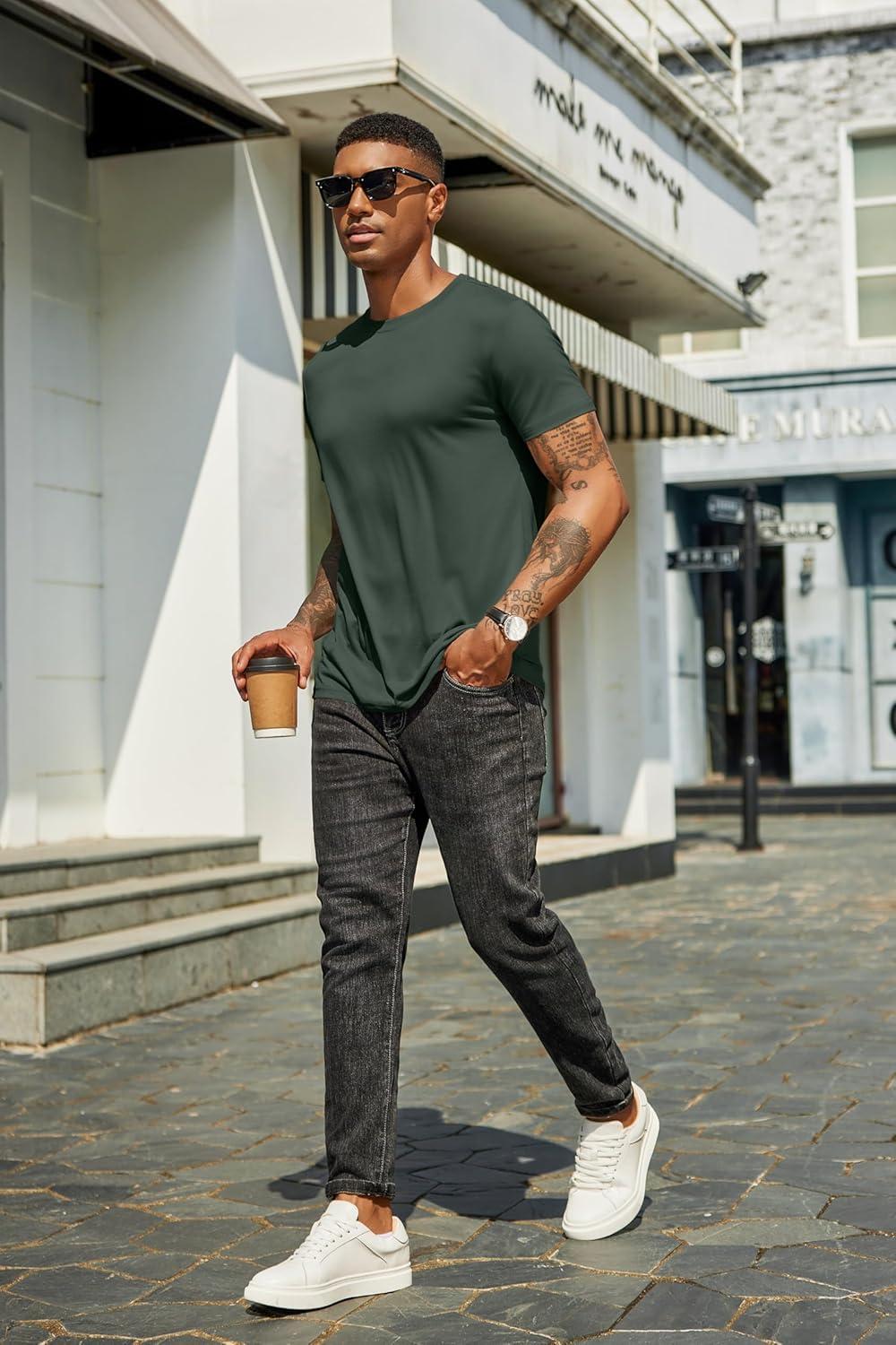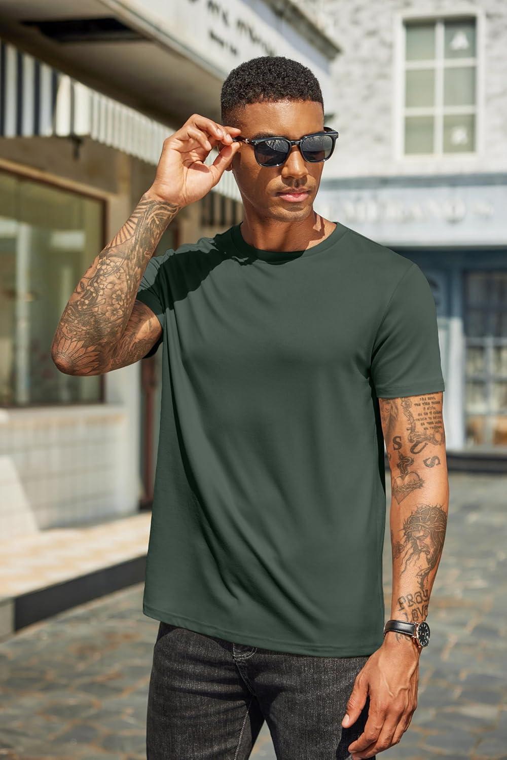 COOFANDY Men’s Short Sleeve T-Shirts Crew Neck Casual Summer T Shirts 1-3 Pack Basic Tee Shirt(A-dark Army Green 1 Pack)