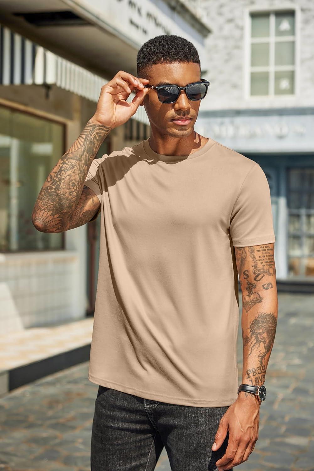 COOFANDY Men’s Short Sleeve T-Shirts Crew Neck Casual Summer T Shirts 1-3 Pack Basic Tee Shirt(A-khaki 1pack)