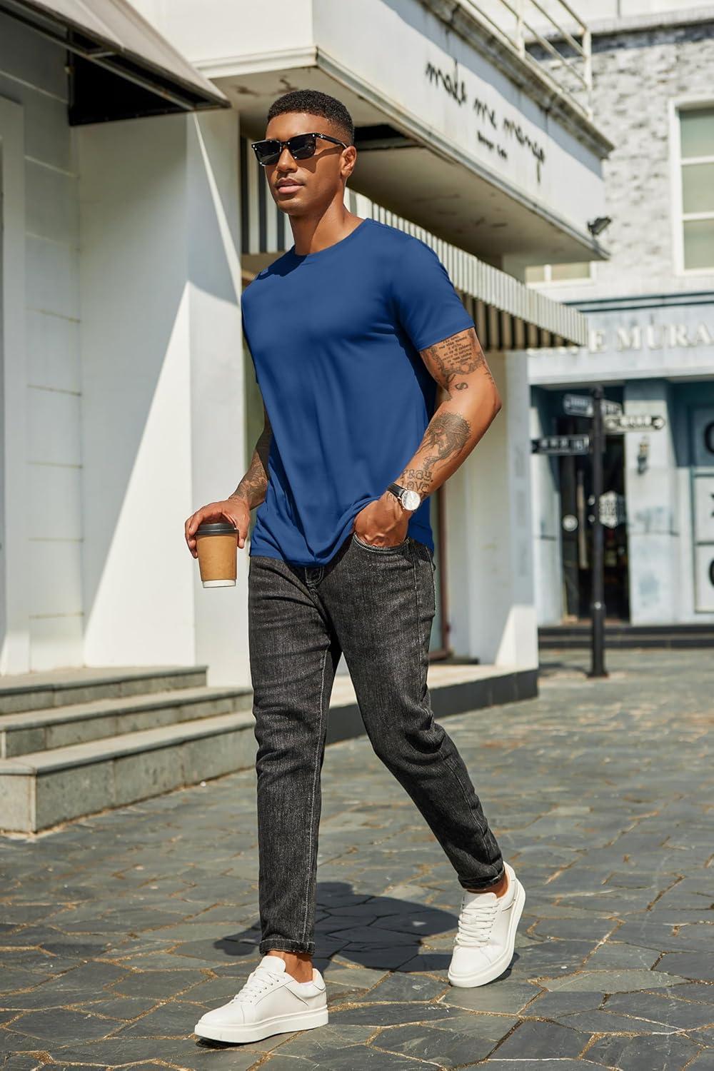COOFANDY Men’s Short Sleeve T-Shirts Crew Neck Casual Summer T Shirts 1-3 Pack Basic Tee Shirt(C- Black/Navy Blue/White -3 Pack)