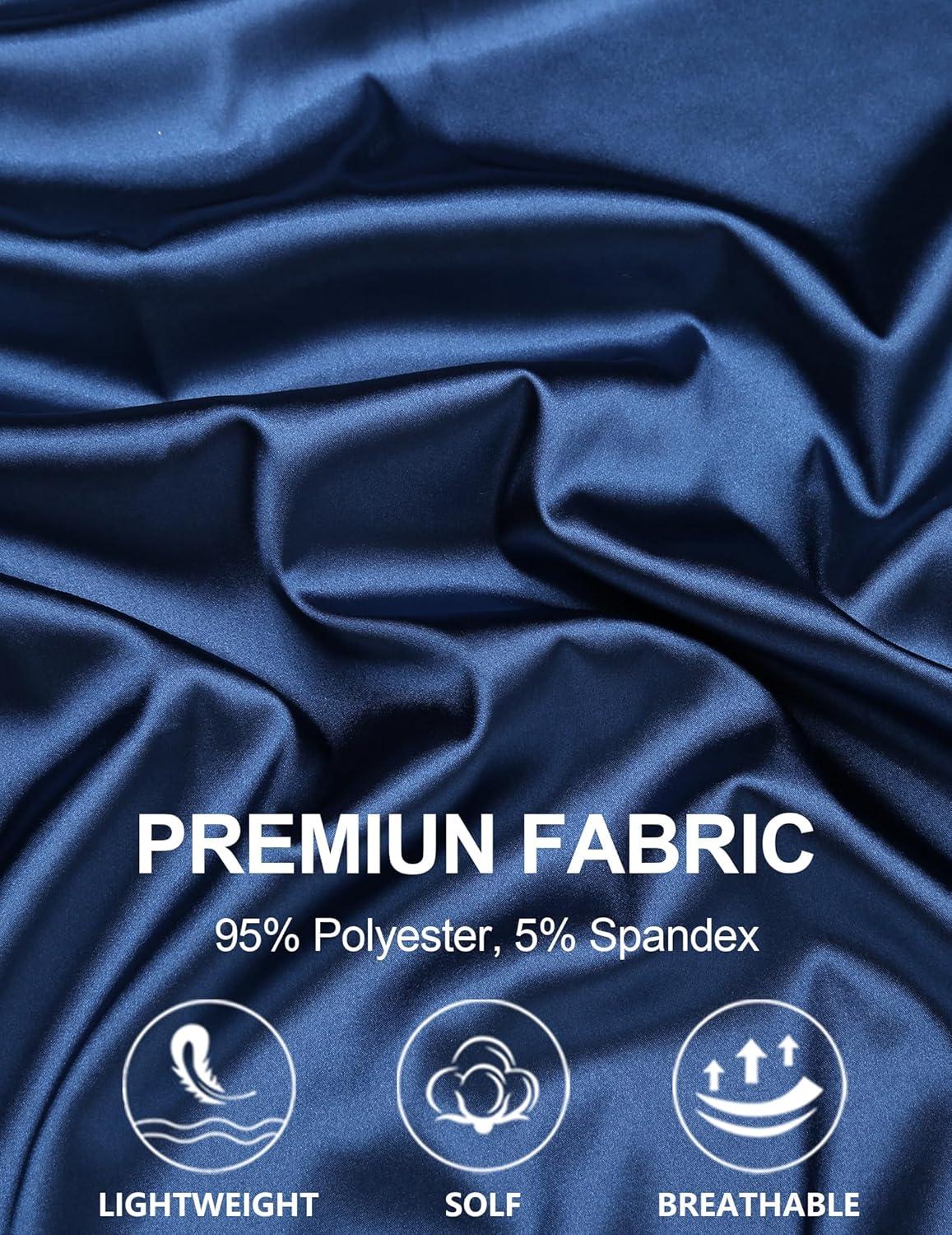 COOFANDY Mens Silk Button Down Short Sleeve Shirt Satin Dress Shirts Summer Beach Wedding Shirt(Navy Blue-pure)