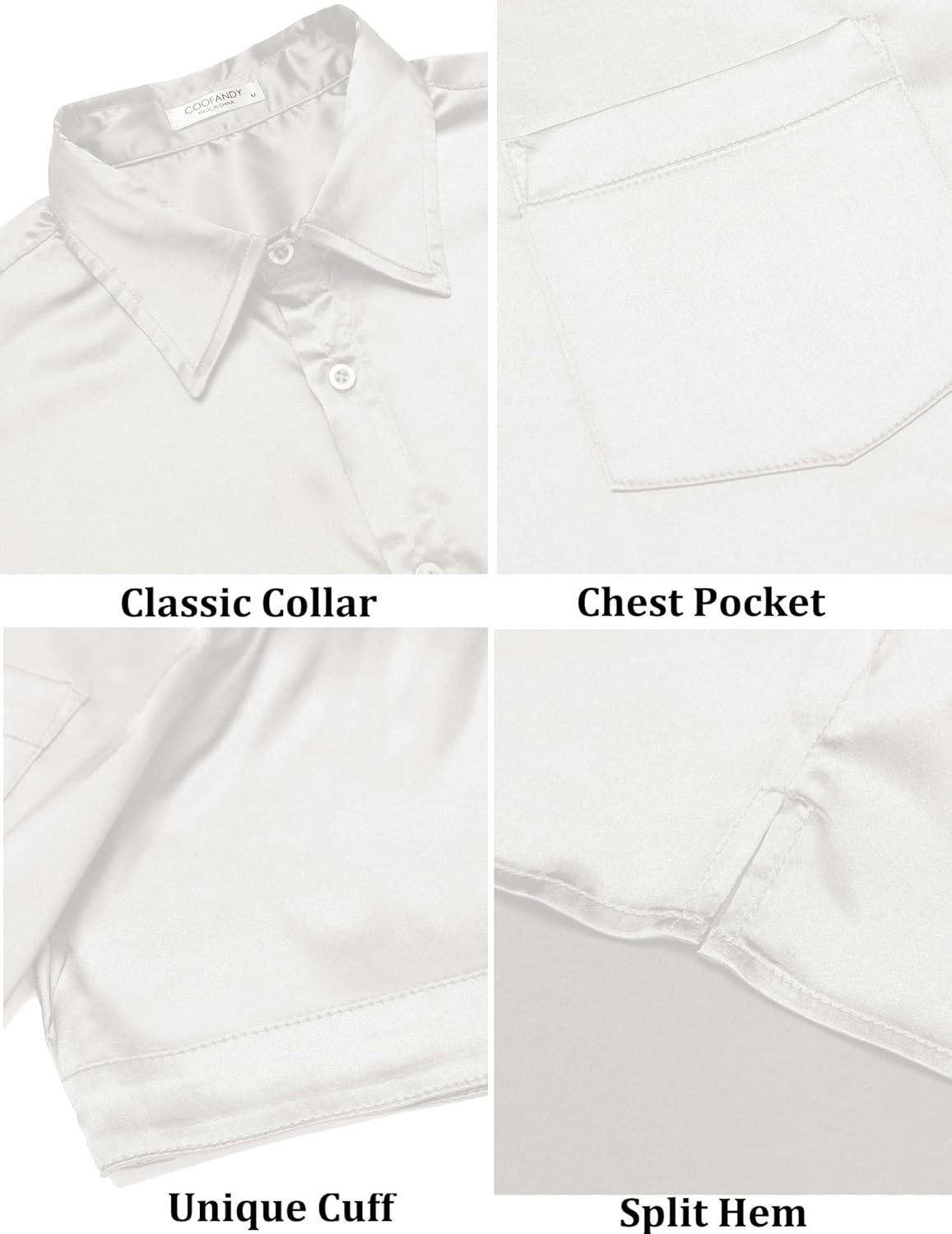 COOFANDY Mens Silk Button Down Short Sleeve Shirt Satin Dress Shirts Summer Beach Wedding Shirt(White-pure)