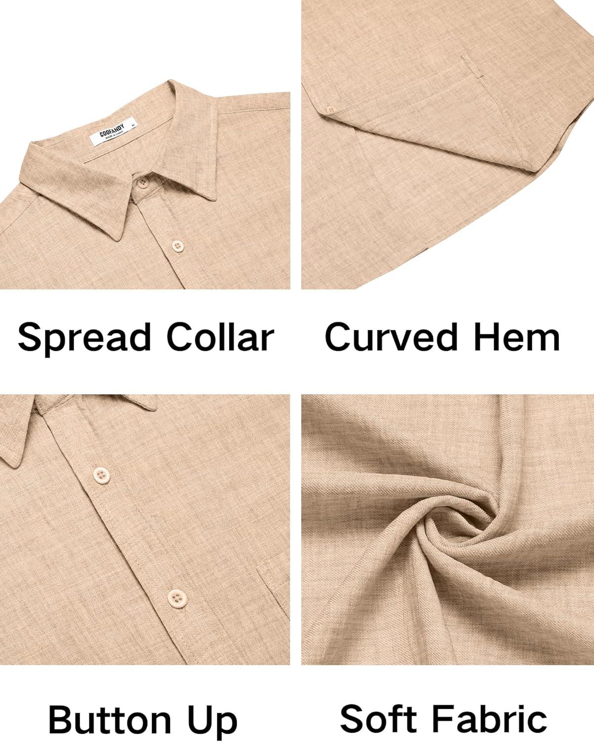 COOFANDY Men’s Sleeveless Beach Shirts Summer Button Up Tank Tops Casual Textured Tank Shirt(Khaki)