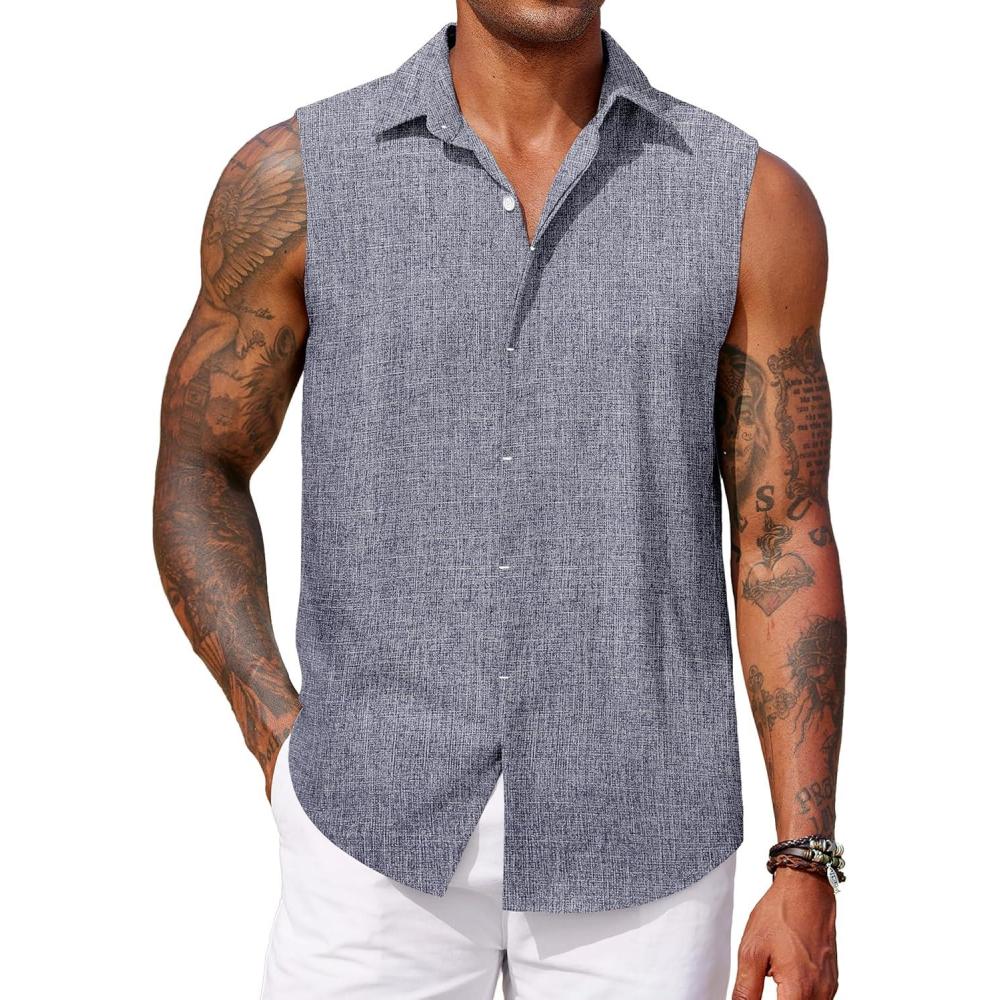 COOFANDY Mens Sleeveless Button Down Beach Shirts Casual Summer Tank Tops Collared Imitation Linen Tank Shirt(Dark Blue Grey)