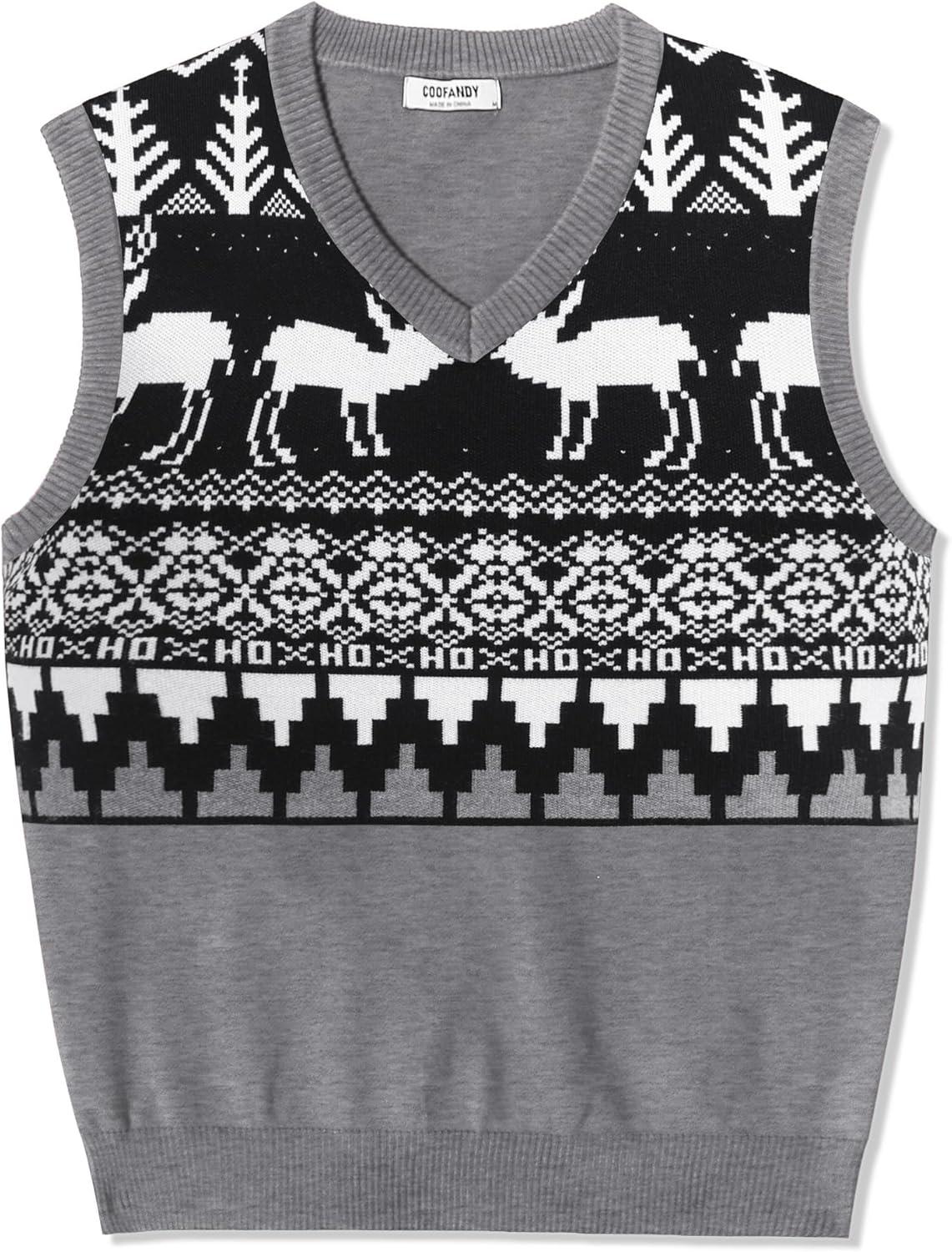 COOFANDY Men’s Sleeveless Sweater Vest Lightweight V-Neck Cotton Vest Pullover(Christmas Elk – Grey)