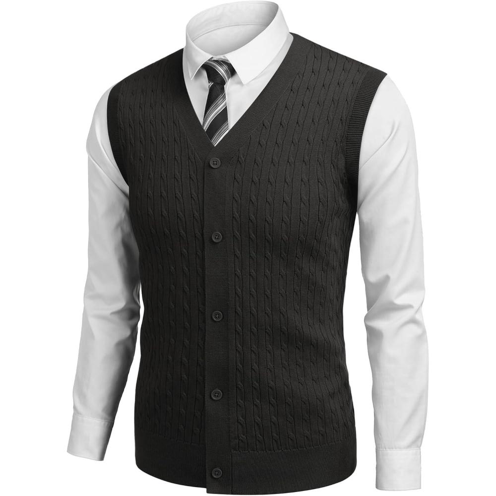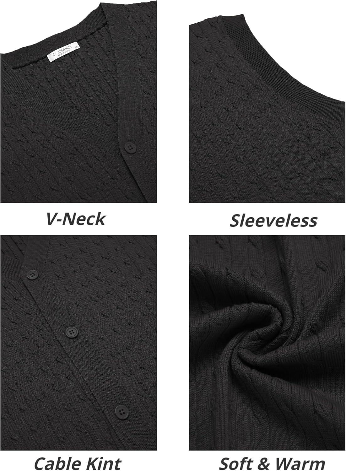 COOFANDY Men’s Sleeveless Sweater Vest V-Neck Casual Cable Knit Button Down Cardigan Vest(Black)