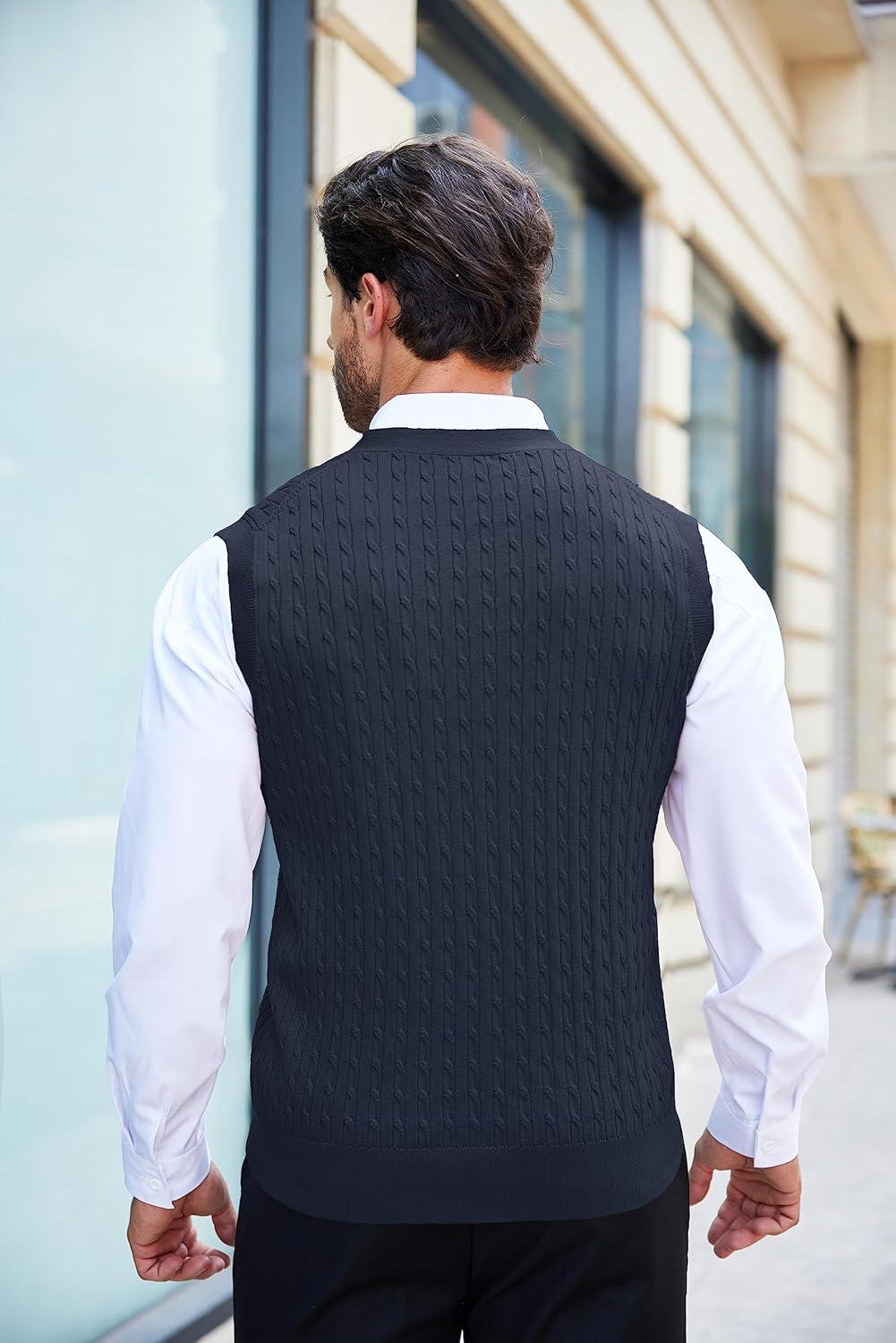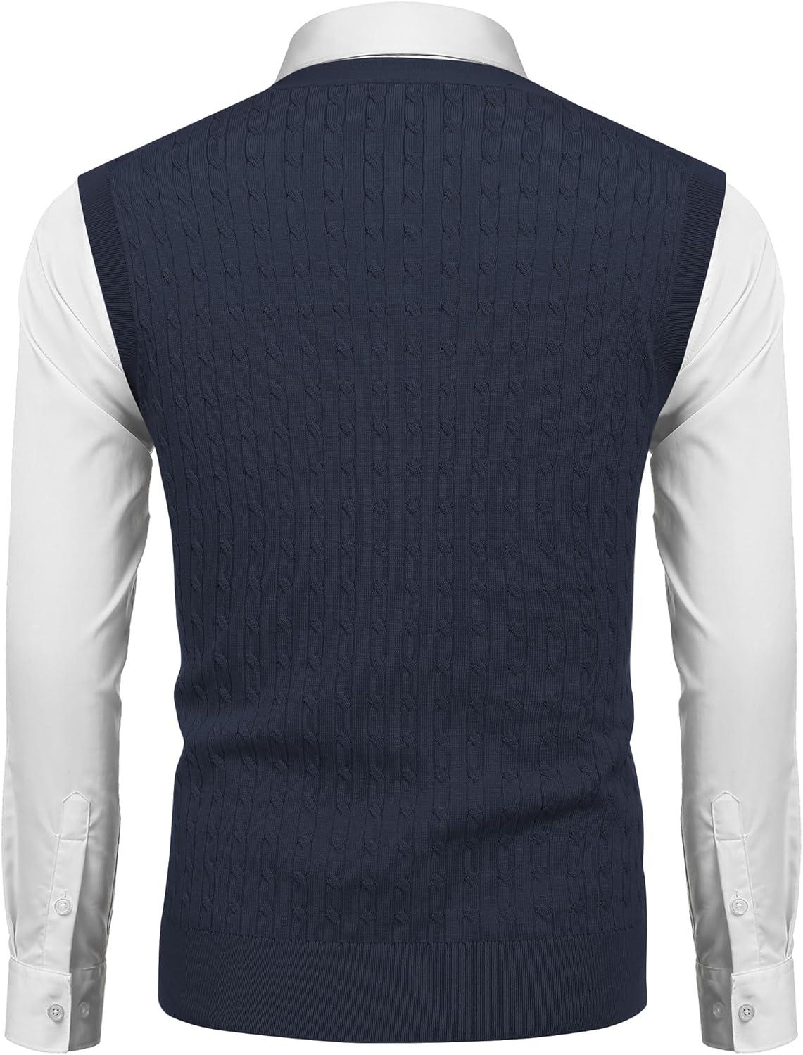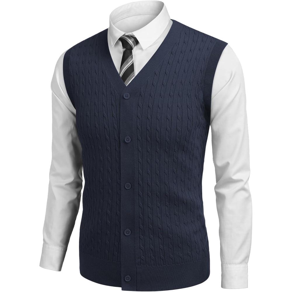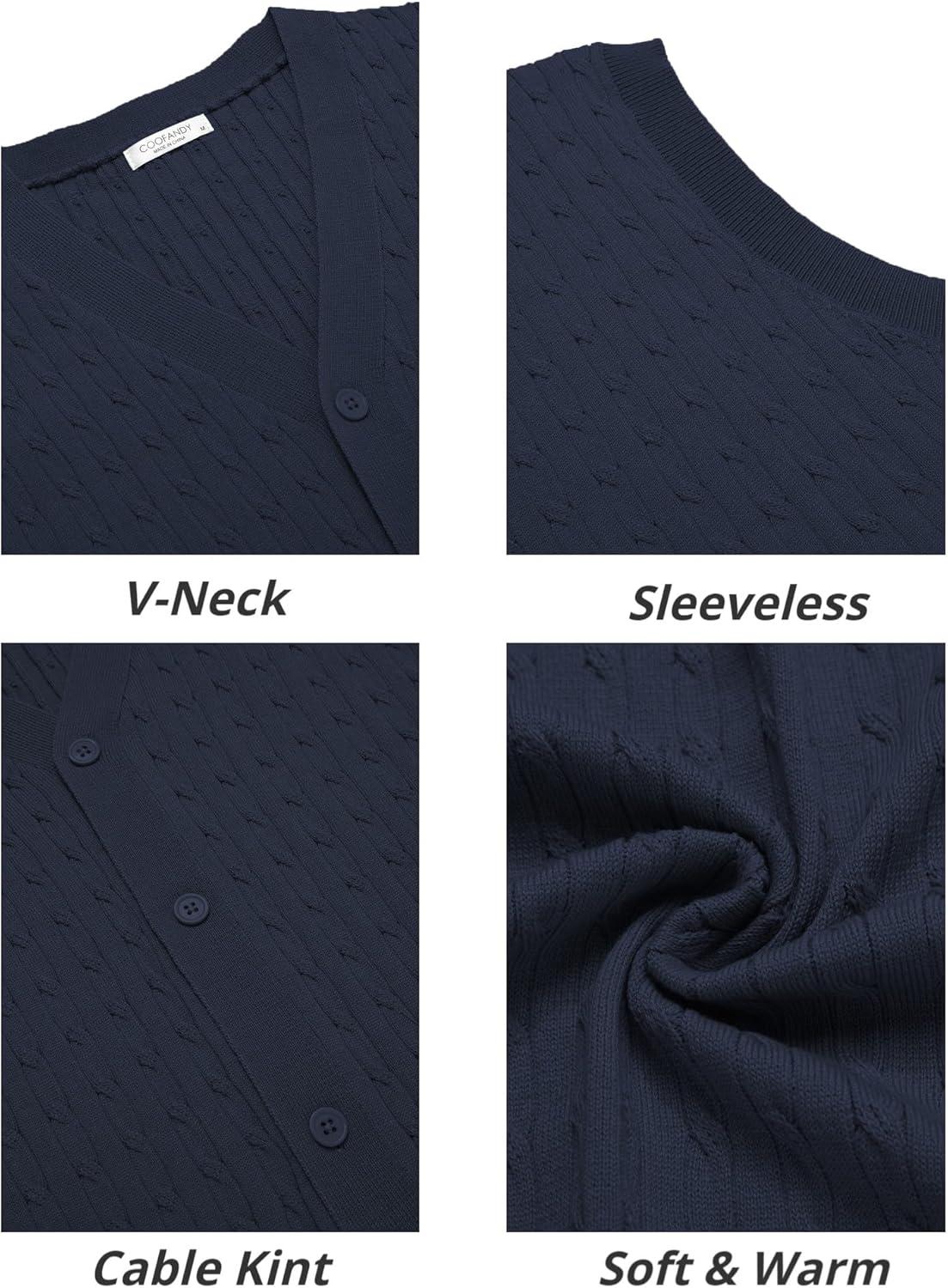 COOFANDY Men’s Sleeveless Sweater Vest V-Neck Casual Cable Knit Button Down Cardigan Vest(Navy Blue)