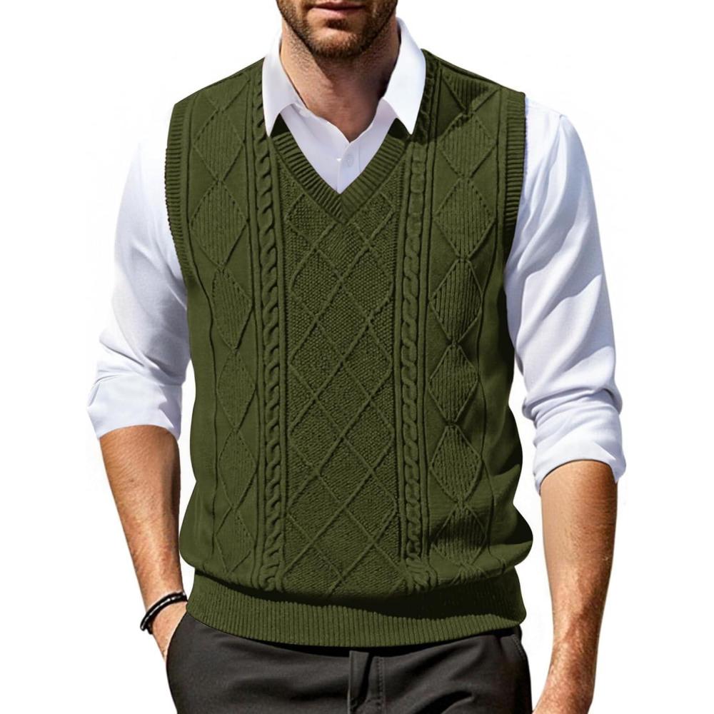 COOFANDY Men’s Sleeveless V Neck Pullover Sweater Slim Fit Casual Argyle Sweater Vest(Army Green)