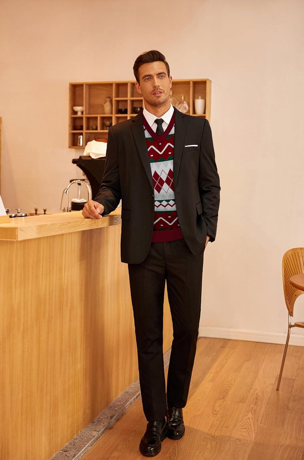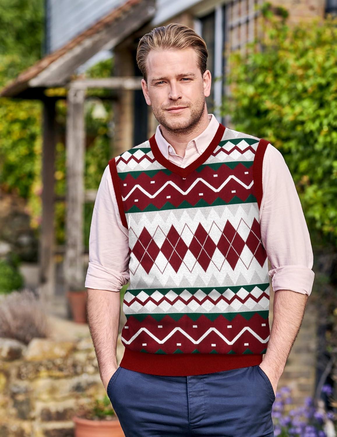 COOFANDY Men’s Sleeveless V Neck Pullover Sweater Slim Fit Casual Argyle Vest Sweaters(Gz981 Red and White Plaid)