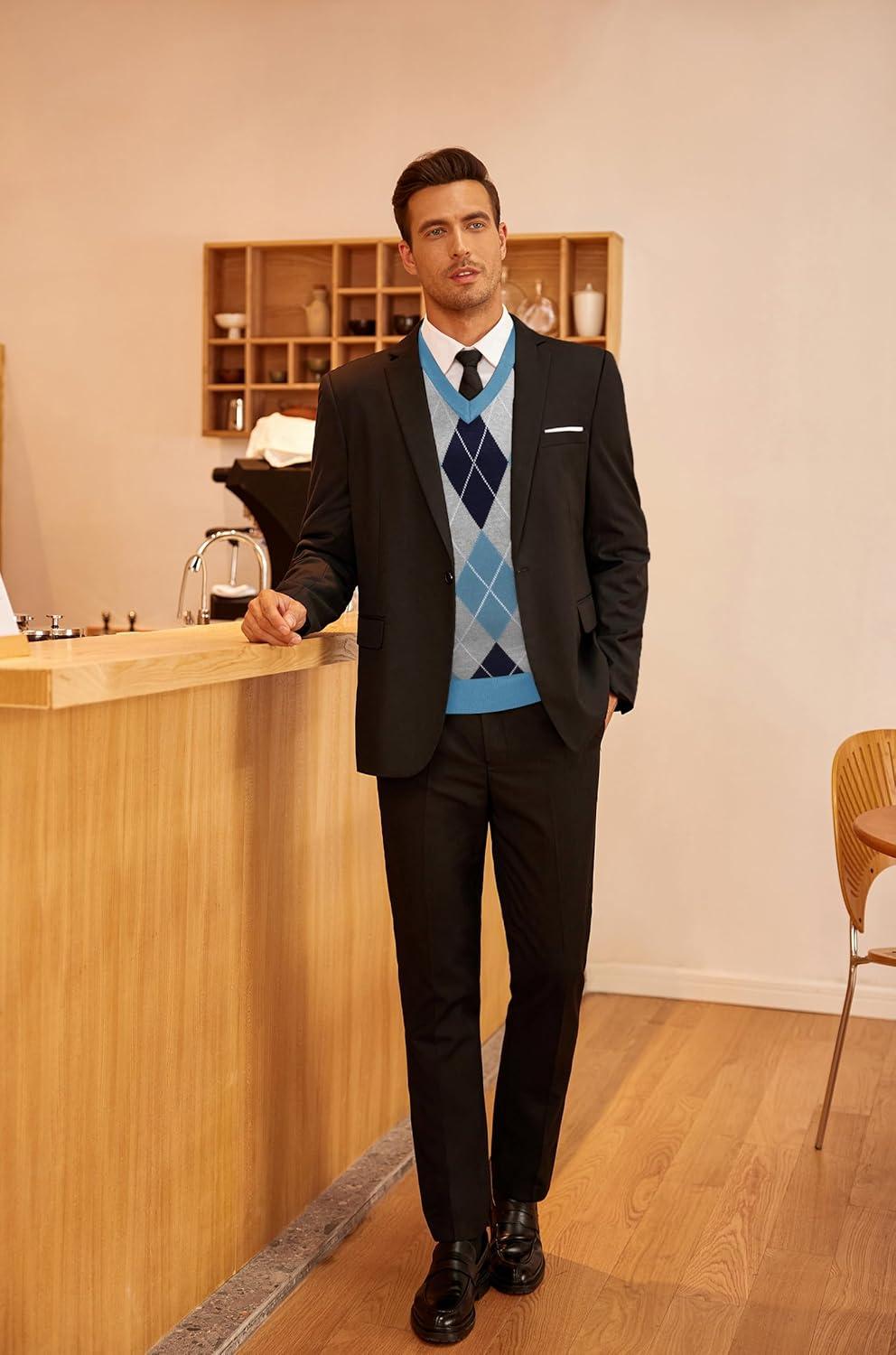 COOFANDY Men’s Sleeveless V Neck Pullover Sweater Slim Fit Casual Argyle Vest Sweaters(Light Blue)