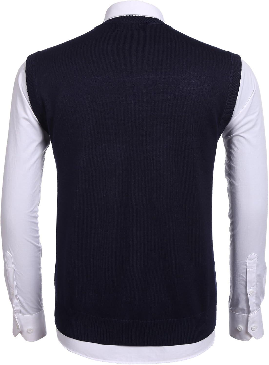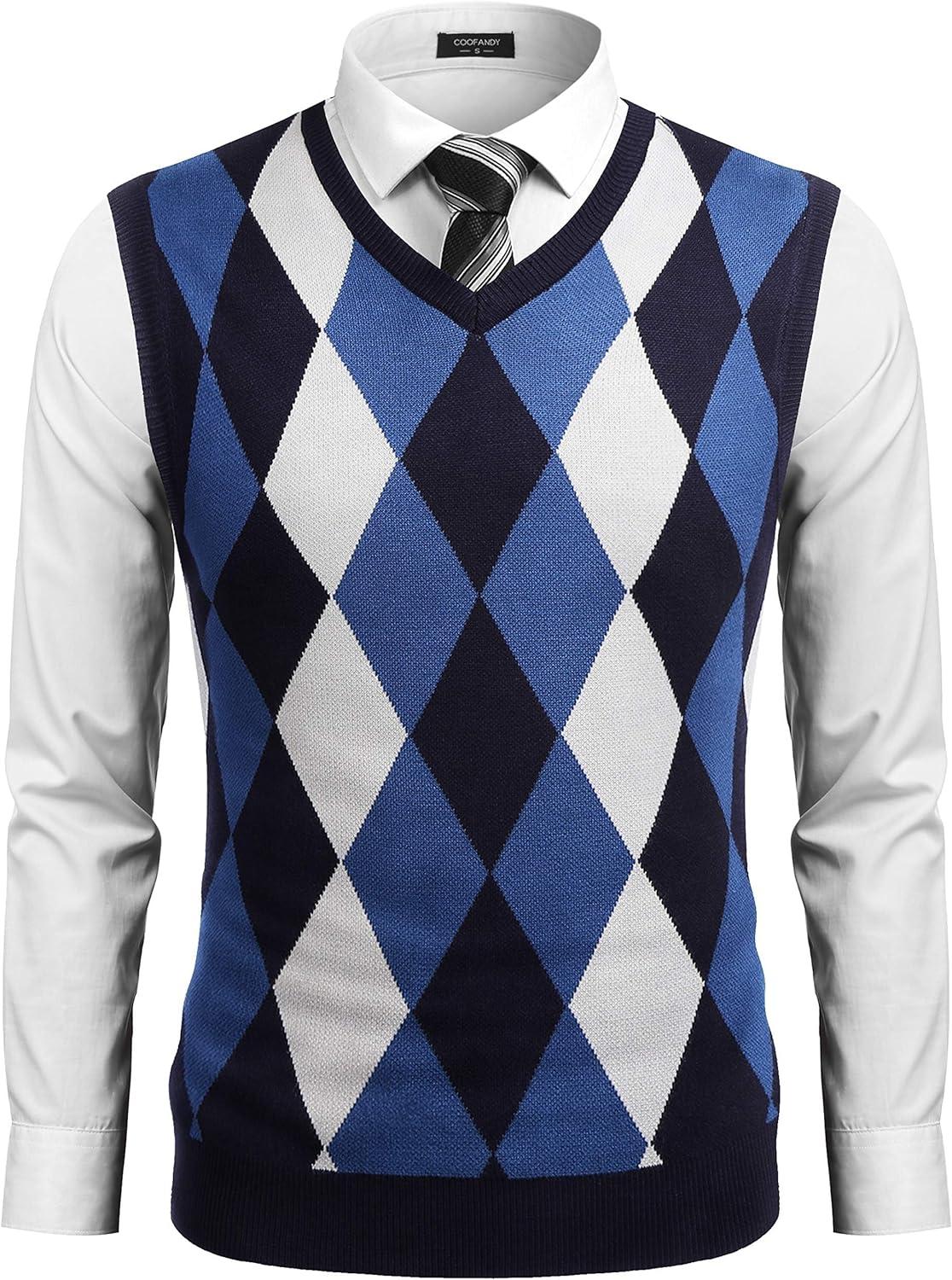 COOFANDY Men’s Sleeveless V Neck Pullover Sweater Slim Fit Casual Argyle Vest Sweaters(Navy Blue)